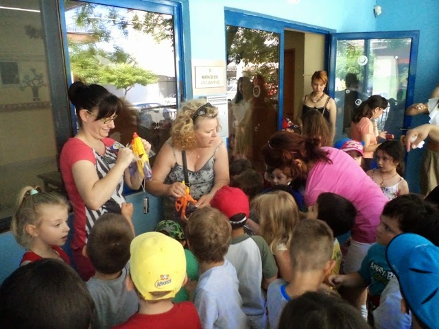Μπαλονομαχίες, ζωγραφική με χρωματιστά παγάκια, γλυκές …σκυταλοδρομίες, βιβλία, νεροπίστολα και παγωτό ήταν οι εκπλήξεις που περίμεναν τα παιδιά από τις νηπιαγωγούς τους και τις μαμάδες του συλλόγου που για άλλη μία φορά έδωσαν δυναμικά το παρόν τους στις δράσεις του νηπιαγωγείου.