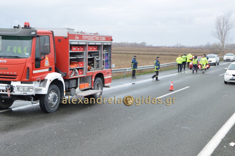 Τροχαίο ατύχημα σημειώθηκε το μεσημέρι του Σαββάτου 24 Φεβρουαρίου στην Εγνατία οδό στο ύψος της Πρασινάδας του δήμου Αλεξάνδρειας.