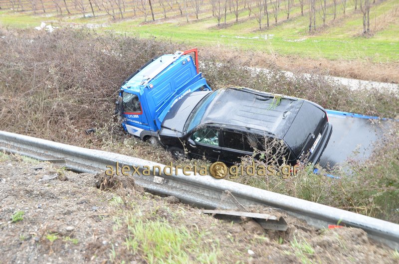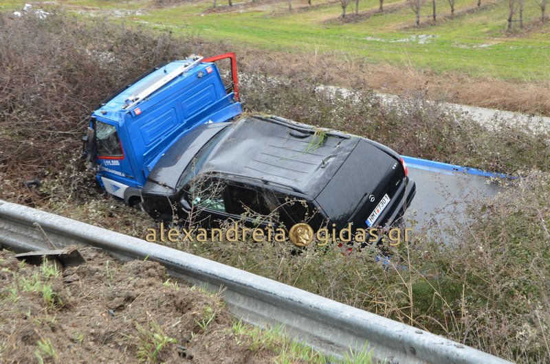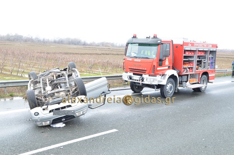 Τροχαίο ατύχημα σημειώθηκε το μεσημέρι του Σαββάτου 24 Φεβρουαρίου στην Εγνατία οδό στο ύψος της Πρασινάδας του δήμου Αλεξάνδρειας.
