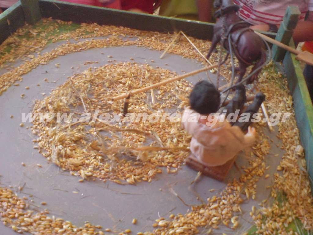 Ο κ Γιώργος Ντελιόπουλος λαογράφος της περιοχής μας, μίλησε και έδειξε στα παιδιά το θερισμό, τον παραδοσιακό τρόπο αλωνίσματος και αλέσματος των σιτηρών μέσα από μια σειρά εργαλείων της εποχής από την προσωπική του συλλογή. Οι μαθητές επεξεργάστηκαν τα εργαλεία, χρησιμοποίησαν το χειρόμυλο, άλεσαν σιτάρι, το κοσκίνησαν και απέκτησαν μια πρώτη εικόνα για τον τρόπο παρασκευής του αλευριού.