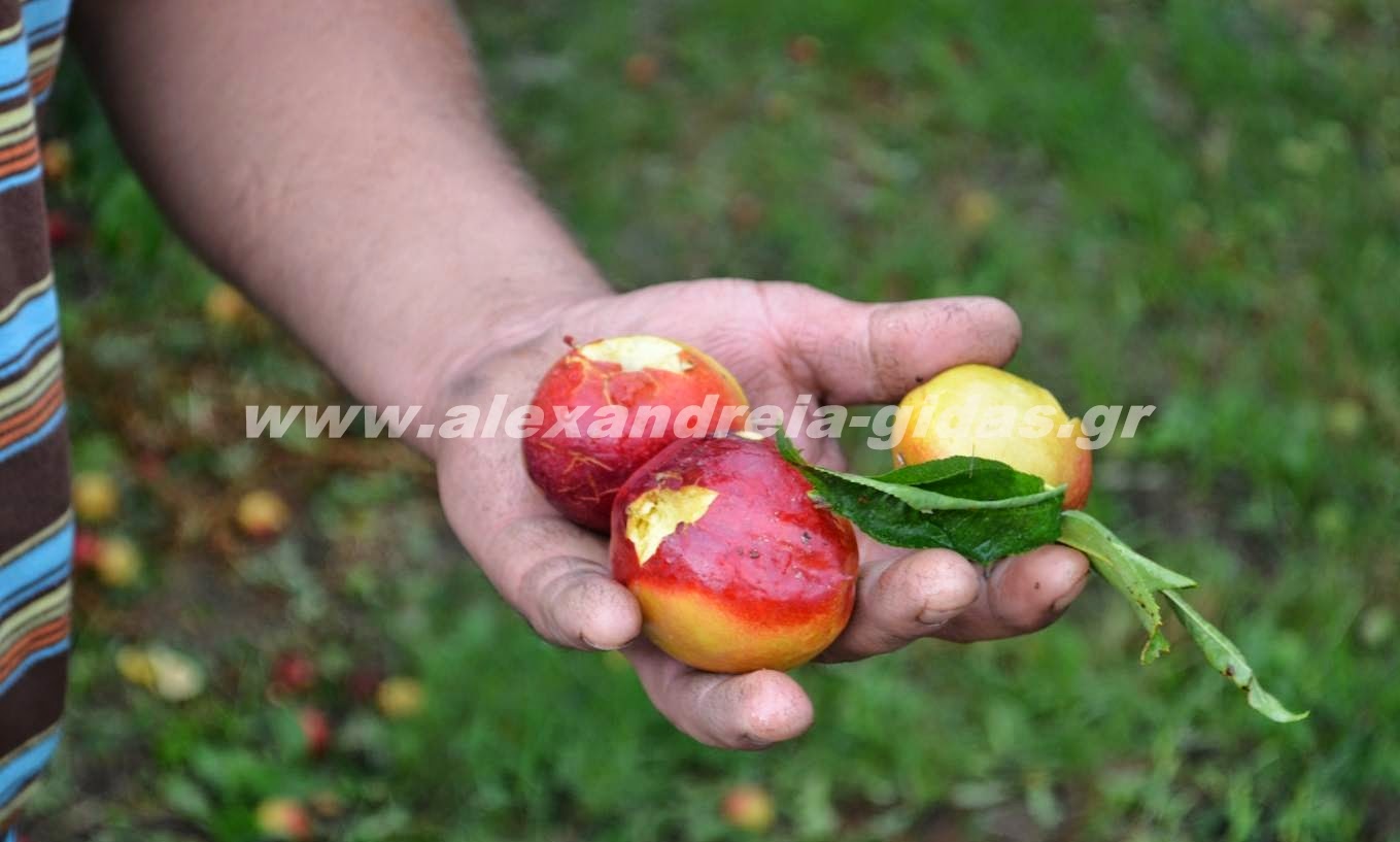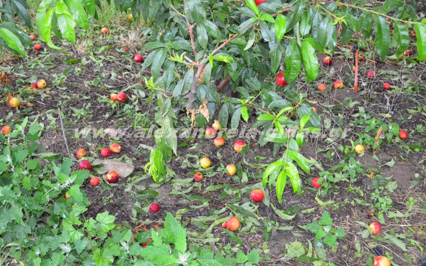 Ροδάκινα πεσμένα αντί να βρίσκονται σε δέντρα, εκείνα που βρίσκονται στα δέντρα χτυπημένα από το χαλάζι, αγροί με βαμβάκια κατεστραμμένα ολοσχερώς όπως και τα αντίστοιχα με καλαμπόκι και ακτινίδια.