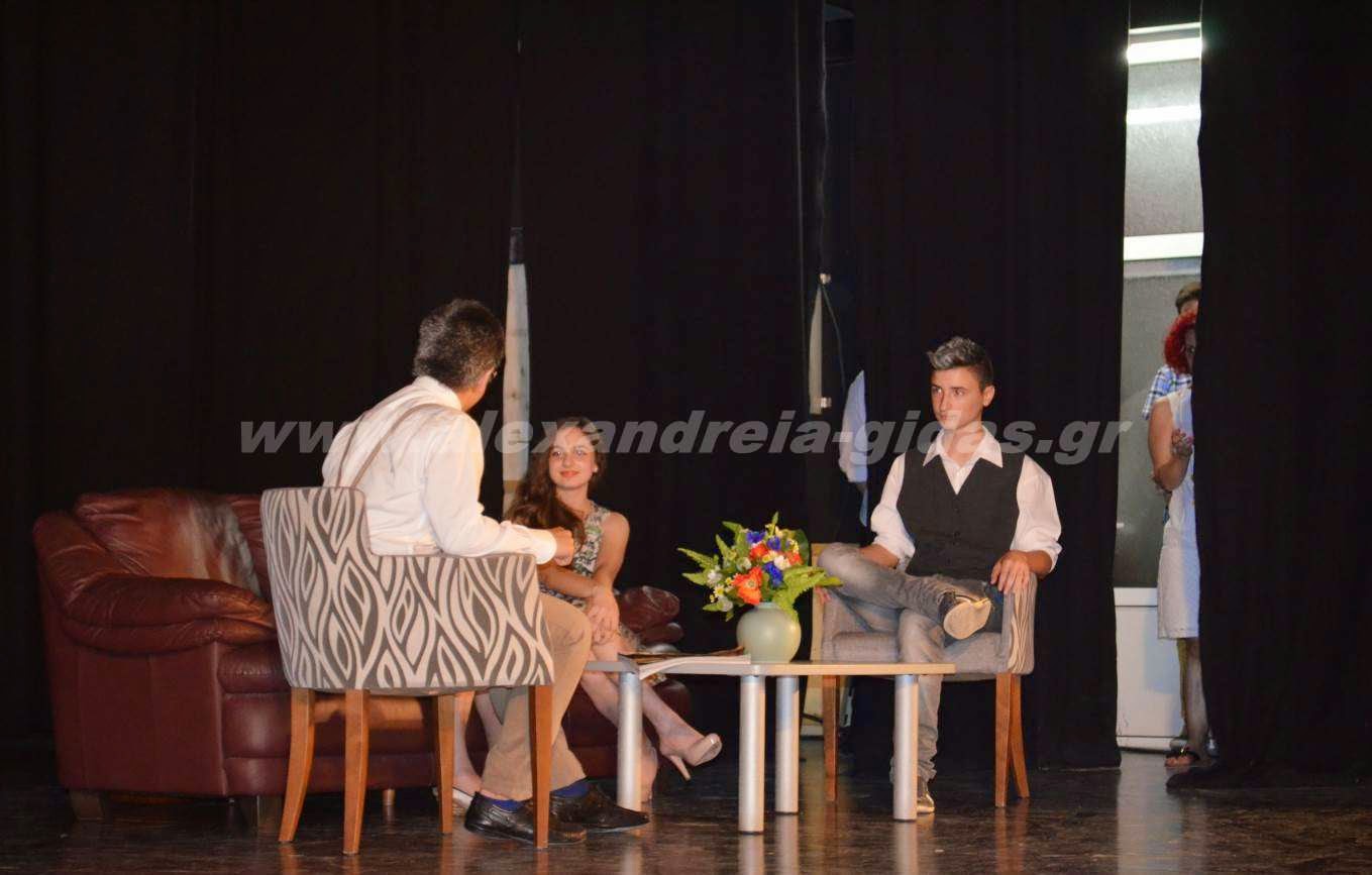 Πολλά συγχαρητήρια στους μαθητές και τους καθηγητές που ανέβασαν το έργο το οποίο ελπίζουμε να παρακολουθήσουμε και στο δημοτικό αμφιθέατρο Αλεξάνδρειας στις πολιτιστικές εκδηλώσεις του δήμου μας στη διάρκεια του καλοκαιριού.