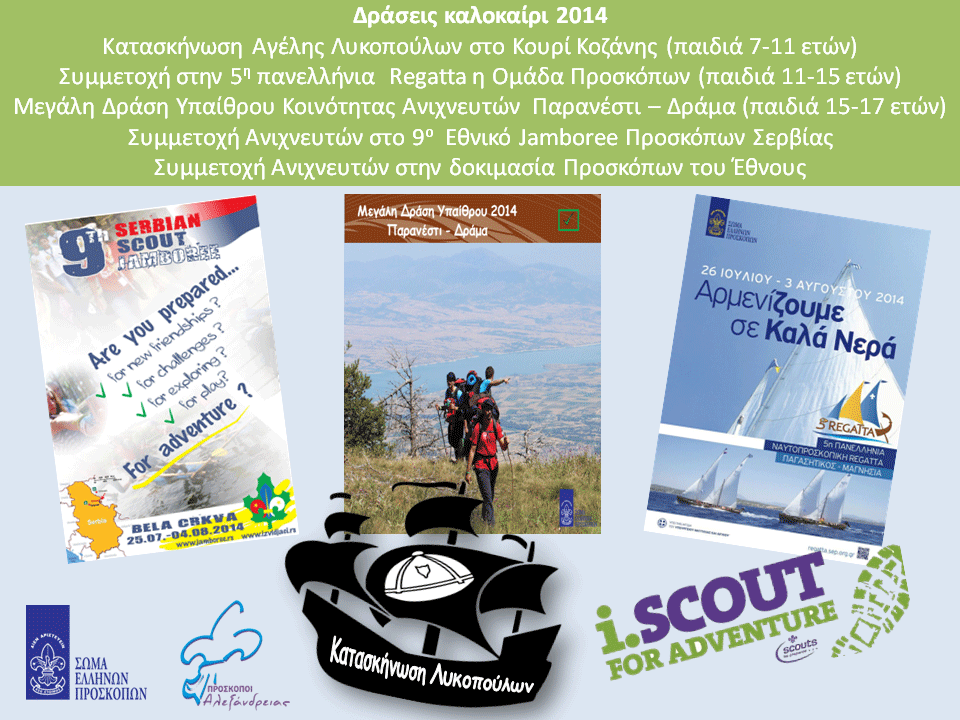 • 16 Ιουλίου τα στελέχη μας, νέοι 17-18 χρονών, θα προετοιμαστούν για τη διαδικασία ανάδειξης Προσκόπων Έθνους για το 2014 στην Άμφισσα.