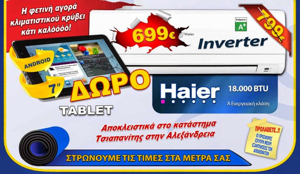 Αποκτήστε κλιματιστικό HAIER στον ΤΣΙΑΠΑΝΙΤΗ και ζητήστε ΔΩΡΟ ένα Tablet!
