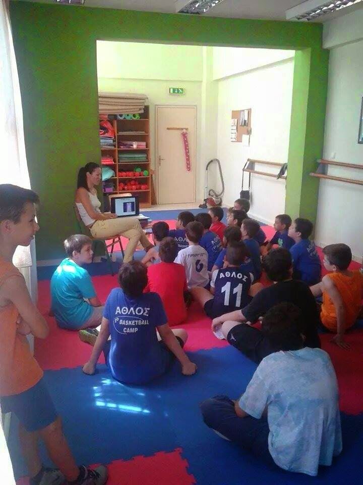 Η κ. Παπαευθυμίου έδειξε στους νεαρούς αθλητές τον σωστό τρόπο βουρτσίσματος των δοντιών και επίσης μέσω του power point παρουσίασε την ανάπτυξη αλλά και τα προβλήματα που δημιουργούνται από την ελλειπή φροντίδα των δοντιών και των ούλων.