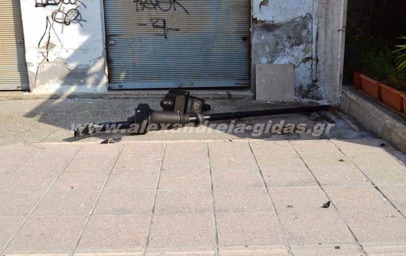 Ένα από τα καινούρια φωτιστικά της ανάπλασης απέναντι από το δημαρχείο της Αλεξάνδρειας καταστράφηκε.