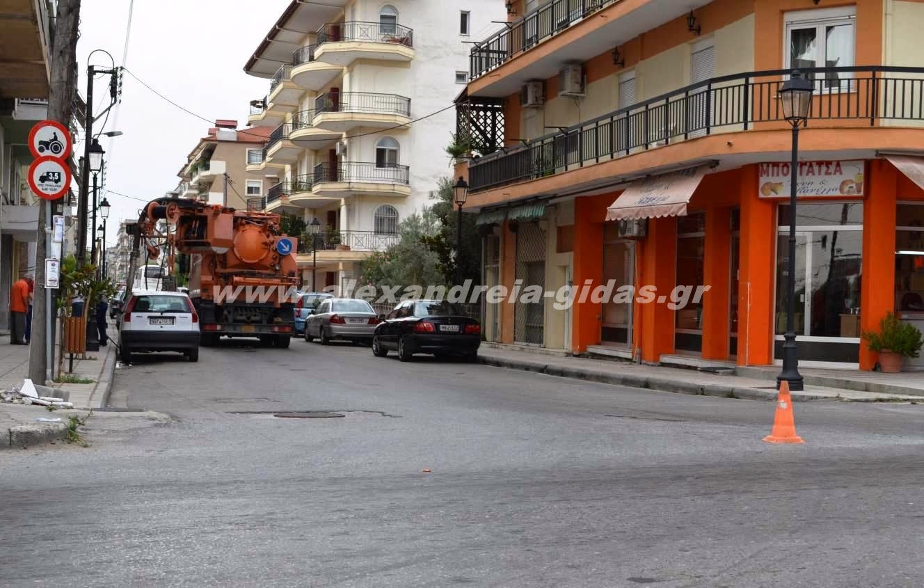 Κλειστή είναι αυτήν την ώρα (10:16) η Νικολάου Πλαστήρια από την είσοδο της Ελ. Βενιζέλου (στο παλιό φωτογραφείο Κωστράκη) στην Αλεξάνδρεια.