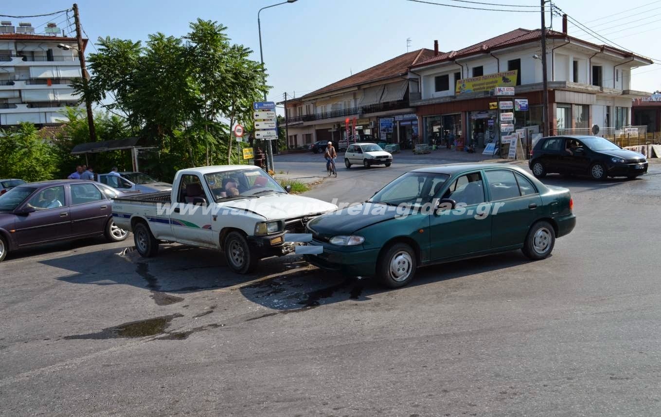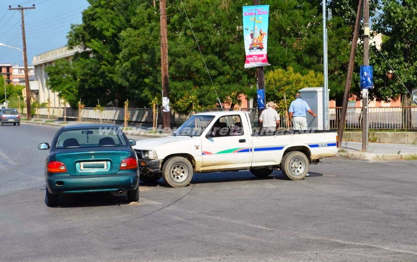 Τροχαίο ατύχημα σημειώθηκε λίγο μετά τις 09:30 μπροστά στο 2ο Γυμνάσιο – Λύκειο Αλεξάνδρειας λίγο πριν τις γραμμές του ΟΣΕ στην έξοδο της Αλεξάνδρειας.
