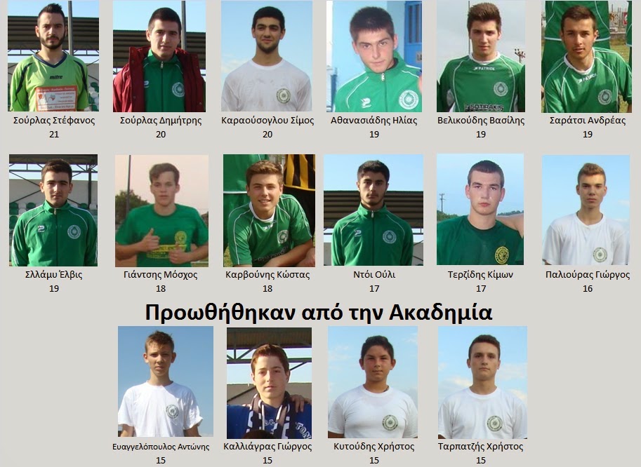 Με προπονητή και παίκτη τον Γιώργο Ντάμτσιο, την απόκτηση δύο ποδοσφαιριστών (Χαλβατζής, Καραούσογλου) ) και την προώθηση από την Ακαδημία τεσσάρων νεαρών (Ταρπατζής, Κυτούδης, Καλλιάγρας, Ευαγγελόπουλος), ολοκληρώθηκε το ρόστερ της ομάδας των Τρικάλων για την ποδοσφαιρική χρονιά 2014-15 (κάτω από τα ονόματα των ποδοσφαιριστών αναγράφεται η ηλικία τους) και είναι: