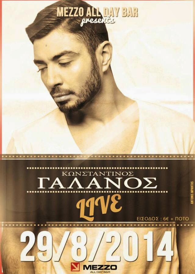 galanosΤον Κωνσταντίνο Γαλανό φέρνει για μία αποκλειστική ζωντανή βραδιά το MEZZO ALL DAY BAR στον πεζόδρομο της Αλεξάνδρειας.