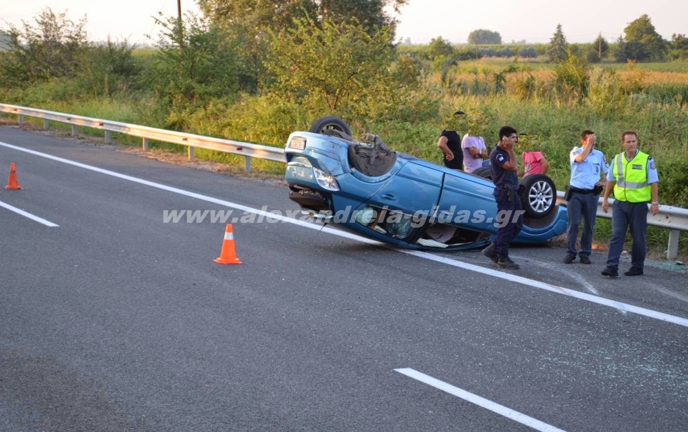 Οδηγός αυτοκινήτου με αλβανικές πινακίδες, έχασε τον έλεγχο του οχήματός του και προσέκρουσε στις παράπλευρες μπάρες με αποτέλεσμα να αναποδογυρίσει το αυτοκίνητο. Ο οδηγός τραυματίστηκε πολύ ελαφρά στο ένα του πόδι.
