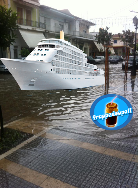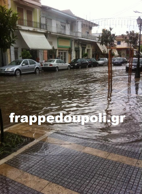 Τώρα πέρα από την πλάκα η κατάσταση της πόλης μετά τη σημερινή νεροποντή είναι τραγική.Πολλά φρεάτια έχουν βουλώσει με αποτέλεσμα οι δρόμοι και τα πεζοδρόμια να έχουν πλημμυρίσει , κάνοντας την μετακίνηση εντός της πόλης πολύ δύσκολη για τους κατοίκους.