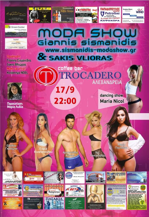 moda23 (Αντιγραφή)Το MODA SHOW GIANNIS SISMANIDIS – SAKIS VLIORAS διοργανώνει την επίδειξη μόδας “Φθινόπωρο – χειμώνας 2014-2015” στην πόλη της Αλεξάνδρειας!