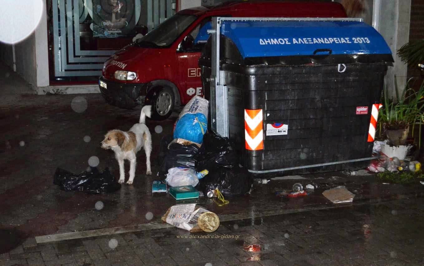 Βράδυ Κυριακής γεμάτος σκουπίδια στη βροχή ο πεζόδρομος Αλεξάνδρειας (εικόνες)