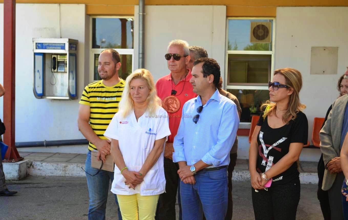 Στην παραλαβή βρέθηκαν εκτός από τους προαναφερόμενους, η περιφερειακή σύμβουλος Νίκη Καρατζιούλα, ο πρόεδρος της Πρωτοβάθμιας εκπαίδευσης του δήμου Αλεξάνδρειας Μόσχος Κυτούδης, ο πρόεδρος της τοπικής κοινότητας Αλεξάνδρειας Μενέλαος Λυμπεράκης, μέλη του Ερυθρού Σταυρού του δήμου Αλεξάνδρειας, γιατροί και προσωπικό του Κέντρου Υγείας Αλεξάνδρειας.