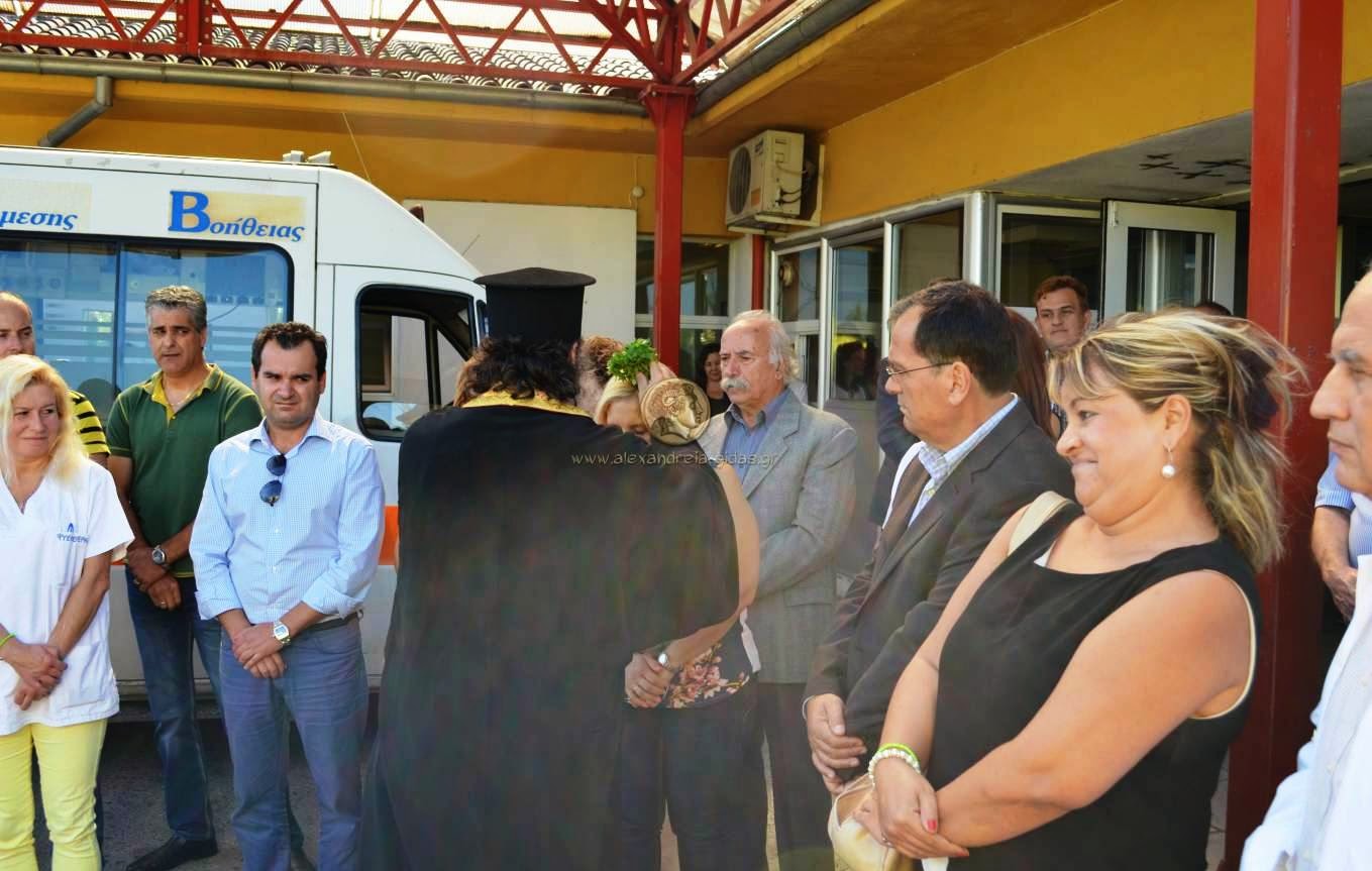 Το ασθενοφόρο το οποίο ήρθε στην Αλεξάνδρεια είναι σύγχρονο 4Χ2 DIESEL και το προμηθεύτηκε η 3η Υγειονομική Περιφέρεια (Μακεδονίας) για το Γενικό Νοσοκομείο Ημαθίας-Κέντρο Υγείας Αλεξάνδρειας στα πλαίσια του ΕΣΠΑ Κεντρικής Μακεδονίας 2007-2013.
