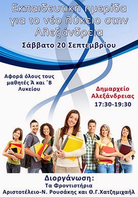Η Ημερίδα θα διεξαχθεί το Σάββατο 20 Σεπτεμβρίου 2014 στην Αίθουσα του Δημοτικού Μεγάρου Αλεξανδρείας από 17:30 έως 19:30.