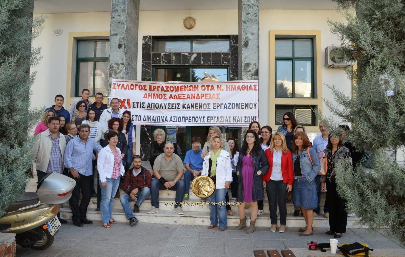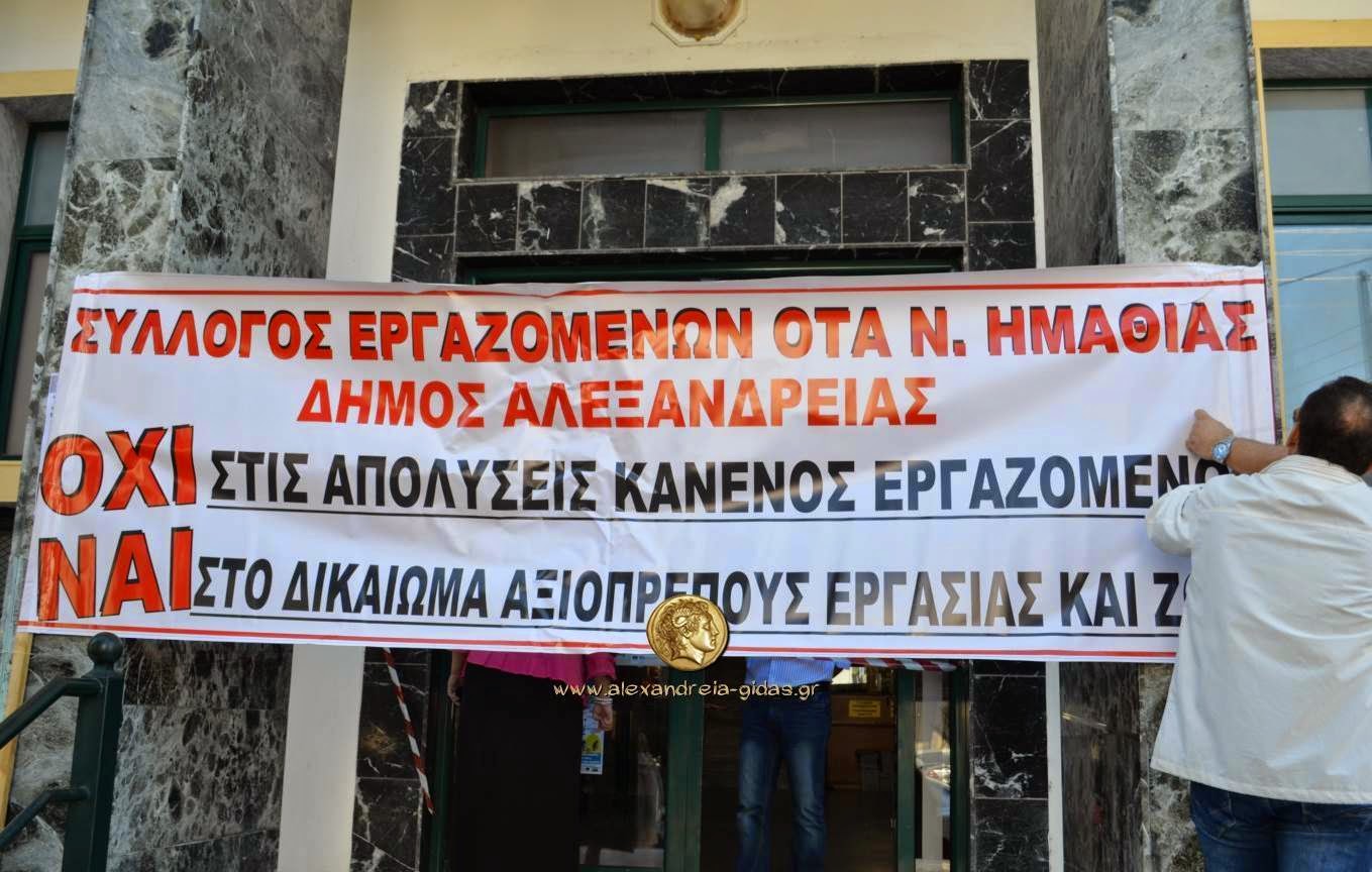 Στην κατάληψη του δημαρχείου Αλεξάνδρειας προχώρησαν από τις 10 το πρωί και οι υπάλληλοι του δήμου Αλεξάνδρειας διαμαρτυρόμενοι στην πανελλήνια αντίδραση της ΠΟΕ – ΟΤΑ για την αξιολόγηση και για τους ελέγχους μετατροπής των συμβάσεων εργαζομένων ορισμένου χρόνου σε αορίστου.
