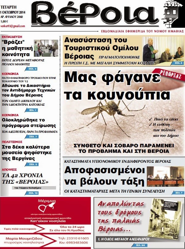 Με ένα επίκαιρο θέμα που αφορά όλους μας ασχολείται στο φύλλο της Τετάρτης 1 Οκτωβρίου η εφημερίδα Βέροια.