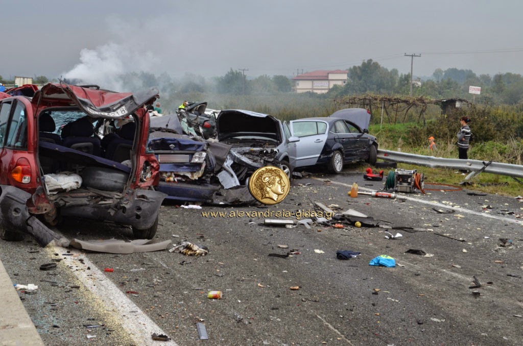 Καραμπόλα που θυμίζει εκείνη στα ΣΕΑ Πλατάνου πριν από 1,5 περίπου χρόνο συνέβη στον κόμβο της Βέροιας στην έξοδο της Εγνατίας προς Θεσσαλονίκη.