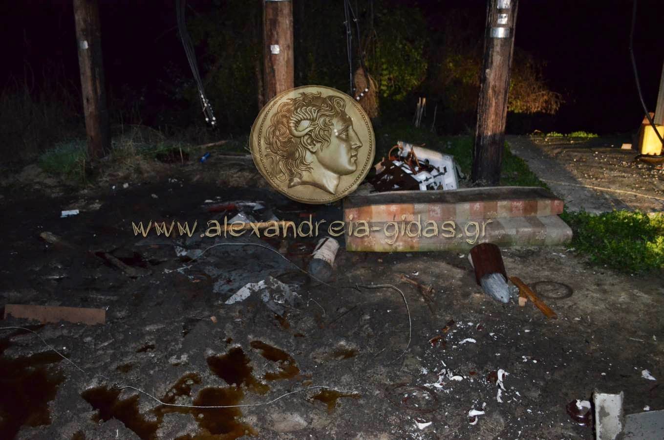 Άγνωστοι τις πρώτες πρωινές της Παρασκευής ή τις βραδινές ώρες της Πέμπτης αφαίρεσαν δύο μετασχηματιστές της ΔΕΗ. Ο αρμόδιος υδρονομέας ενημέρωσε τον πρόεδρο της Δημοτικής Κοινότητας Αλεξάνδρειας Μενέλαο Λυμπεράκη που με τη σειρά του ειδοποίησε τη ΔΕΗ και το Τ.Α. Αλεξάνδρειας που βρέθηκαν στον τόπο του συμβάντος και ερευνά το θέμα.