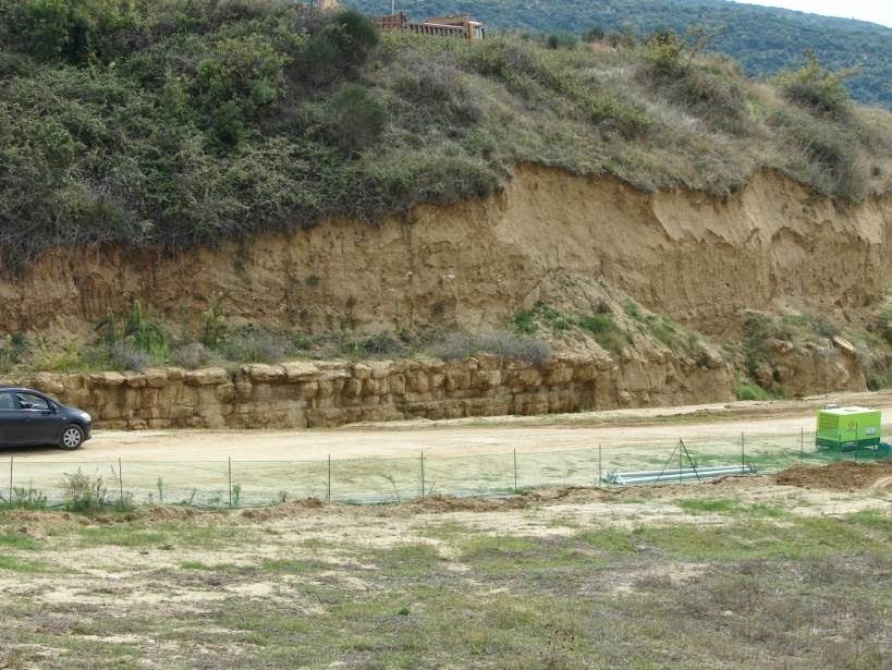 Ο τύμβος Καστά, όπως φαίνεται από το Μουσείο και από το κοντινότερο σημείο που μπορεί να προσεγγιστεί. Η είσοδος έχει σκεπαστεί για προστασία και για ευνόητους λόγους!