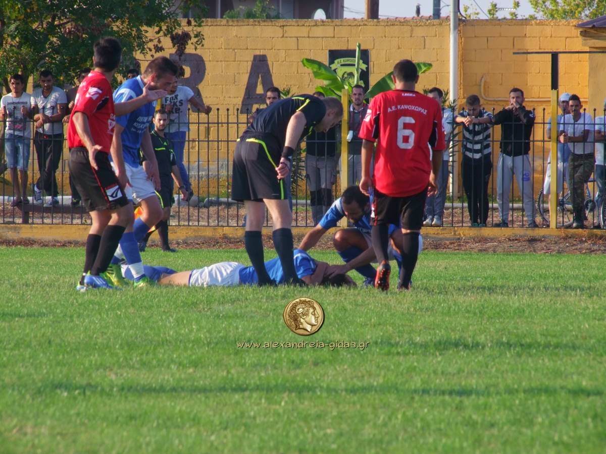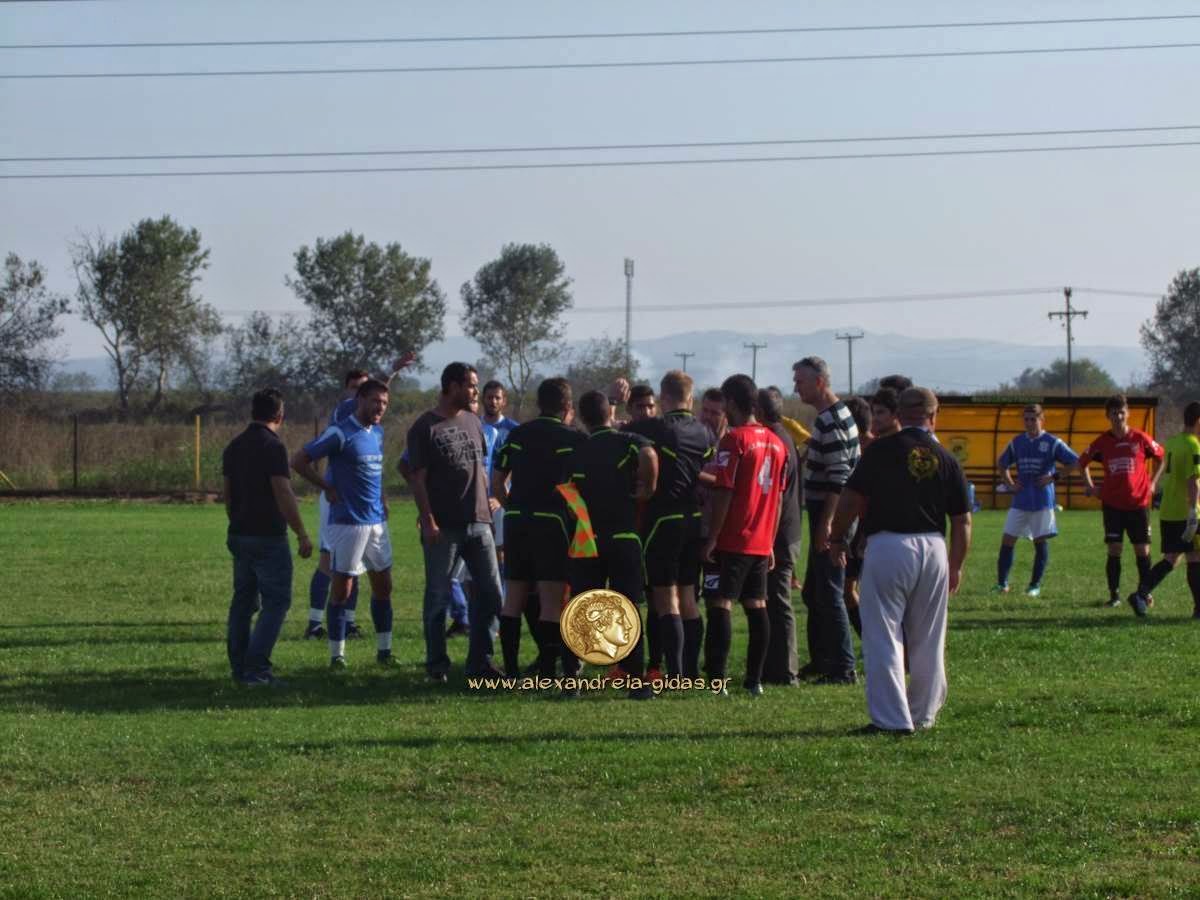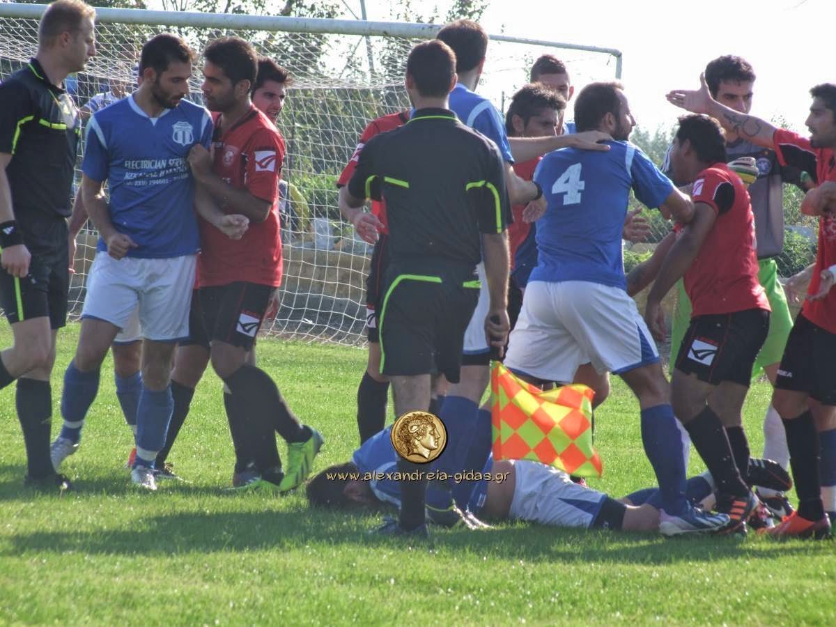 DSCF2060 (Αντιγραφή)Από επεισόδια μεταξύ των ποδοσφαιριστών σημαδεύτηκε ο αγώνας της Α.Ε. Καψόχωρας με τον Εθνικό Κλειδίου για την 5η αγωνιστική του πρωταθλήματος στην Α1 της ΕΠΣ Ημαθίας. Τα επεισόδια ανάγκασαν τον διαιτητή του αγώνα Μαλούτα να διακόψει το παιχνίδι και να φύγει με τους βοηθούς στα αποδυτήρια μέχρι να ηρεμήσουν τα πνεύματα στο πρώτο ημίχρονο με την παρέμβαση της διοίκησης της γηπεδούχου ομάδος.