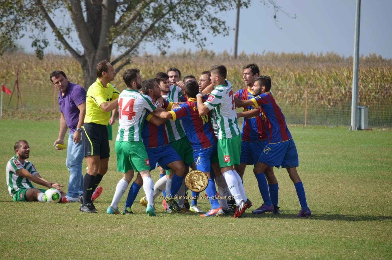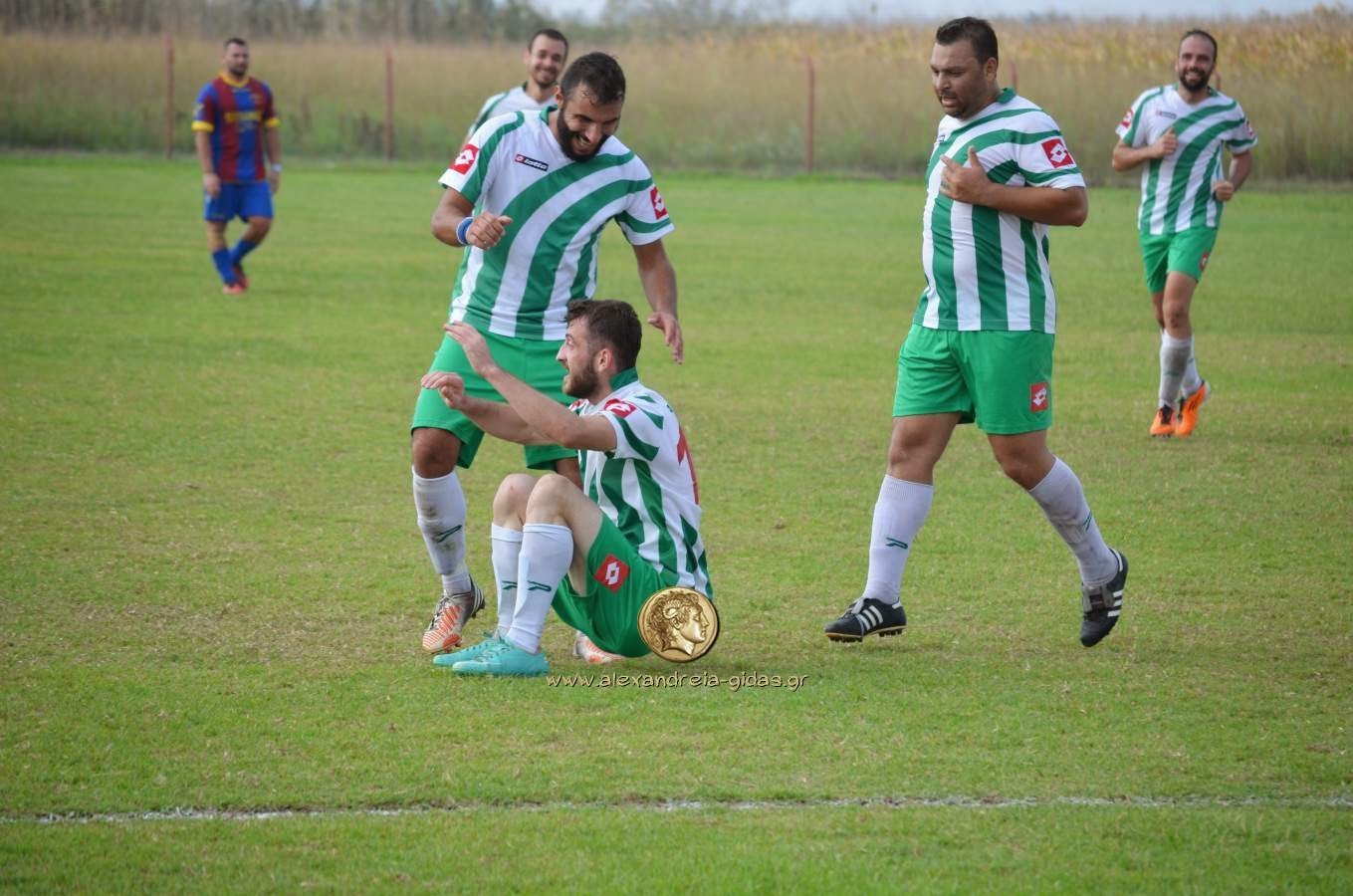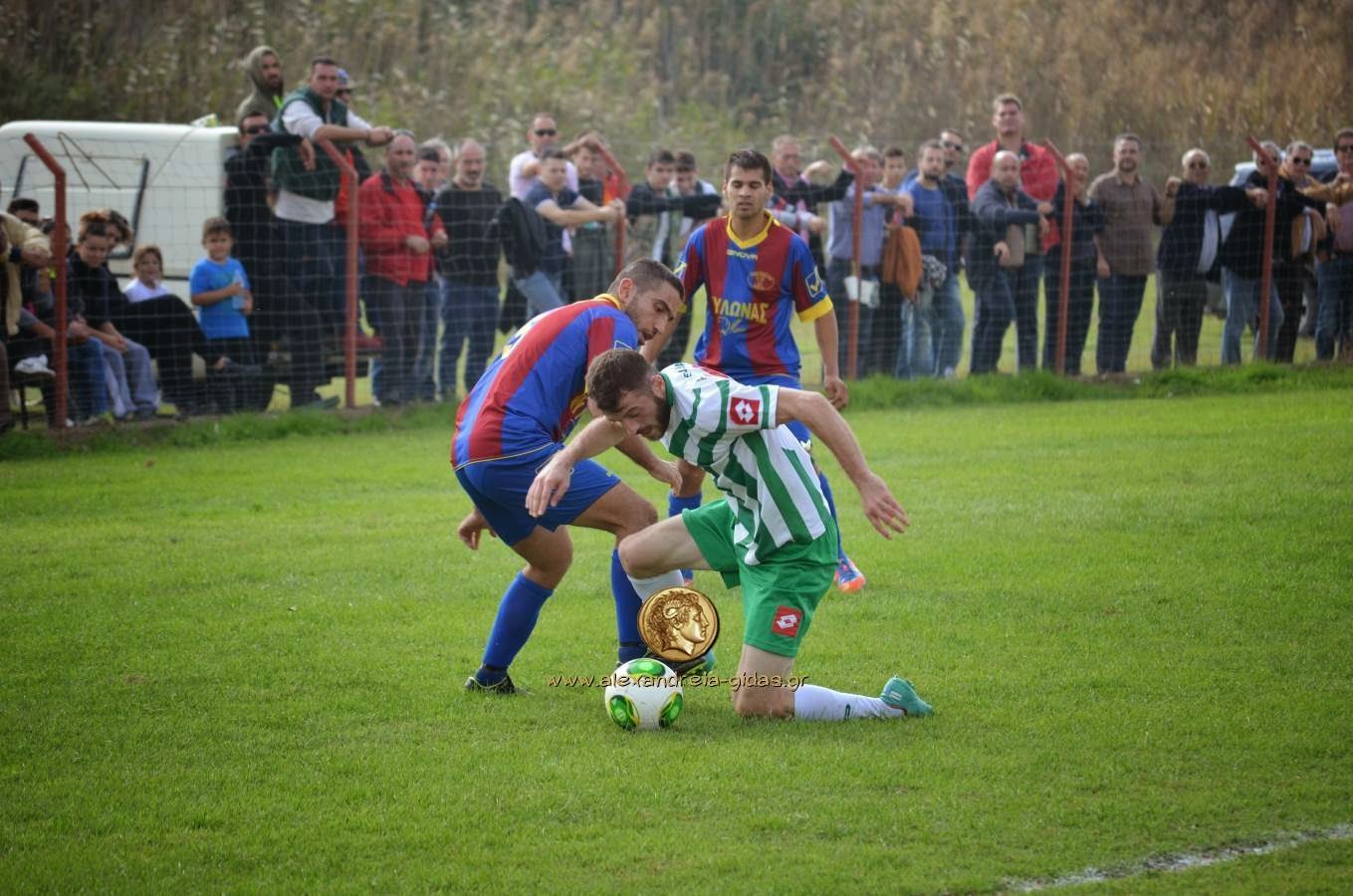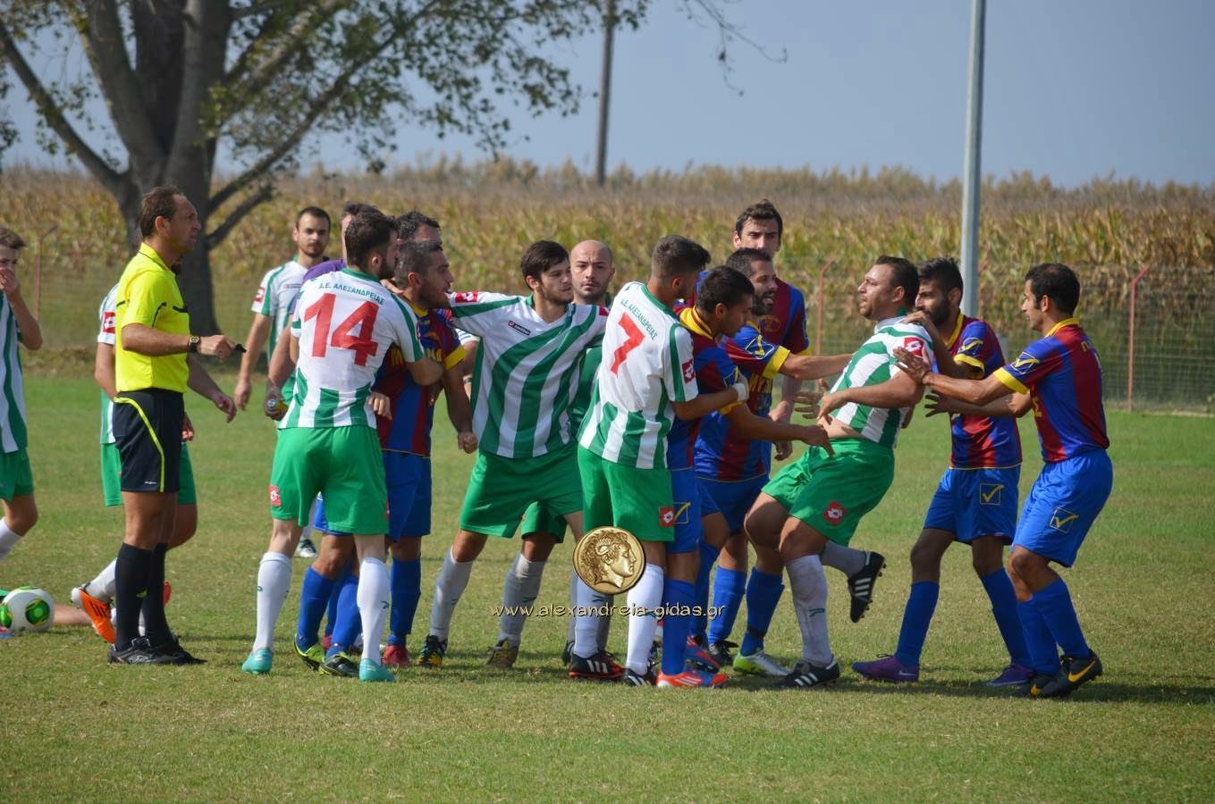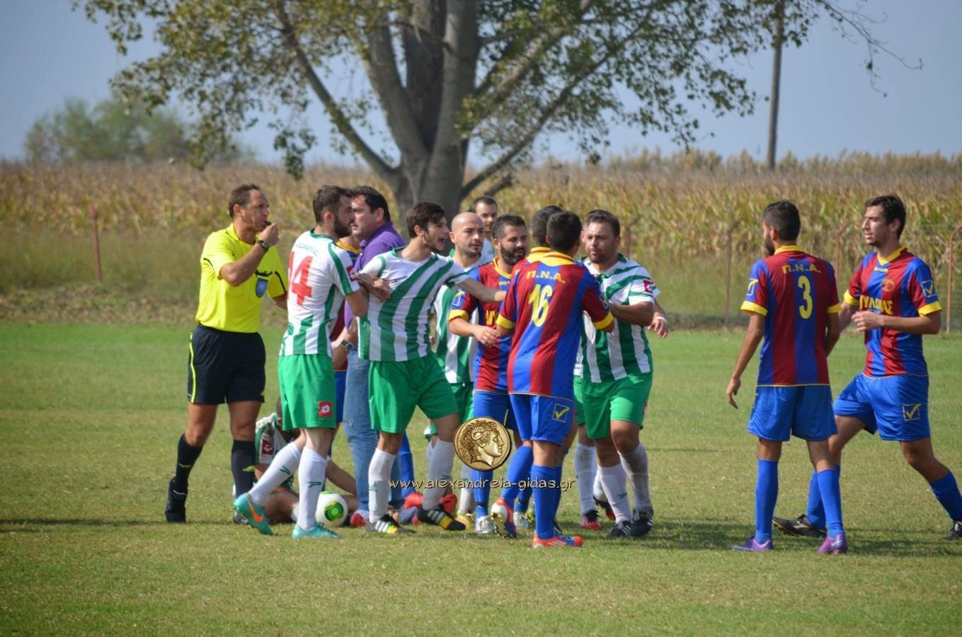 Οι γηπεδούχοι άνοιξαν το σκορ στο 8΄ με απευθείας φάουλ του Δερμιτζόγλου έξω από την μεγάλη περιοχή της Αλεξάνδρειας και κακή αντίδραση του Καρασαββίδη (1-0). Στο 29΄ οι γηπεδούχοι θα μείνουν με 10 ποδοσφαιριστές όταν ο Μελεσσίδης θα αποβληθεί με απευθείας κόκκινη κάρτα για αντιαθλητικό μαρκάρισμα στον Αποστολόπουλο. Στο επόμενο λεπτό ο Κίτσας ισοφάρισε για την Αλεξάνδρεια όταν έγινε κάτοχος της μπάλας ύστερα από κόντρες (1-1).