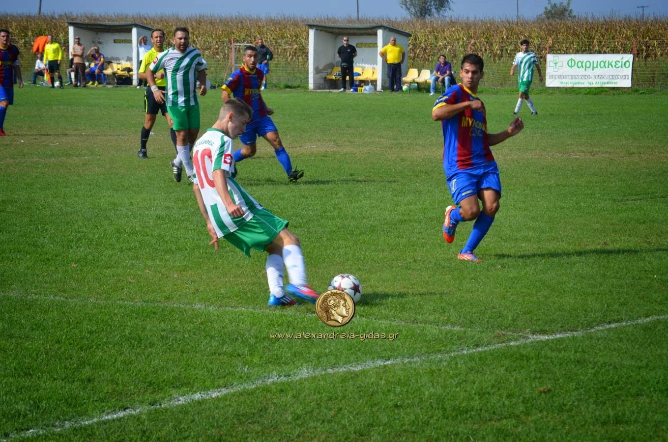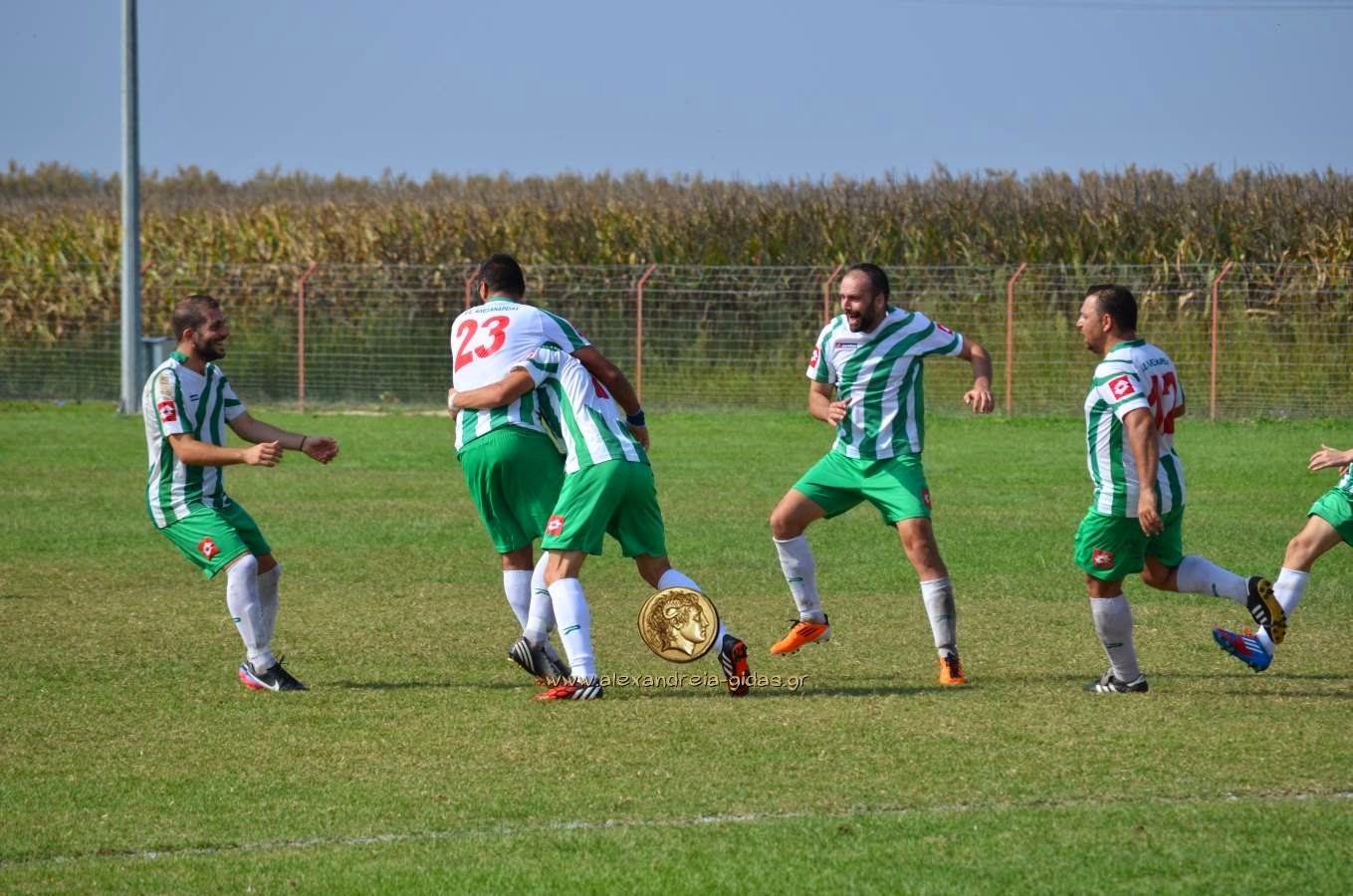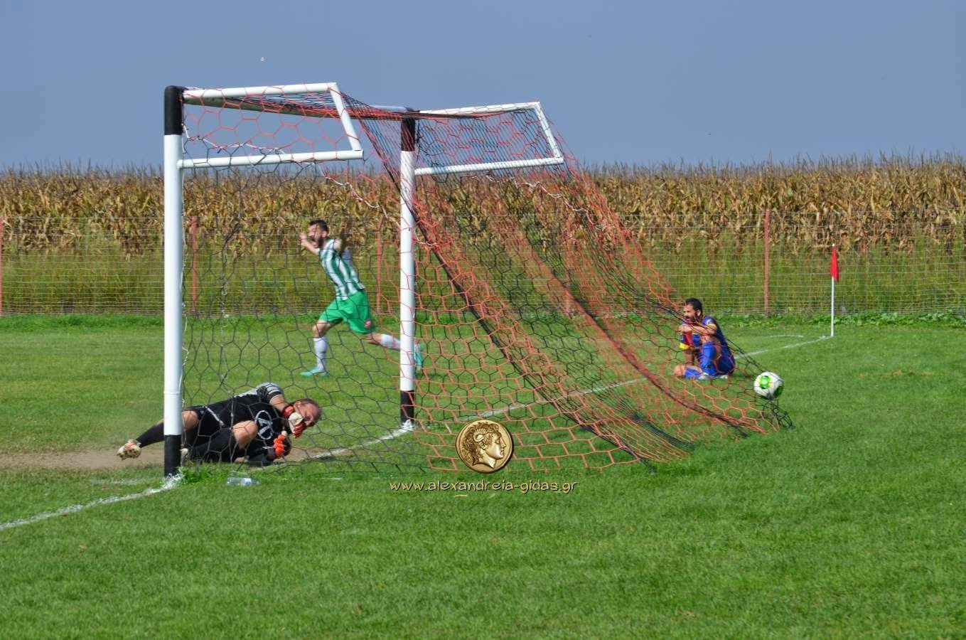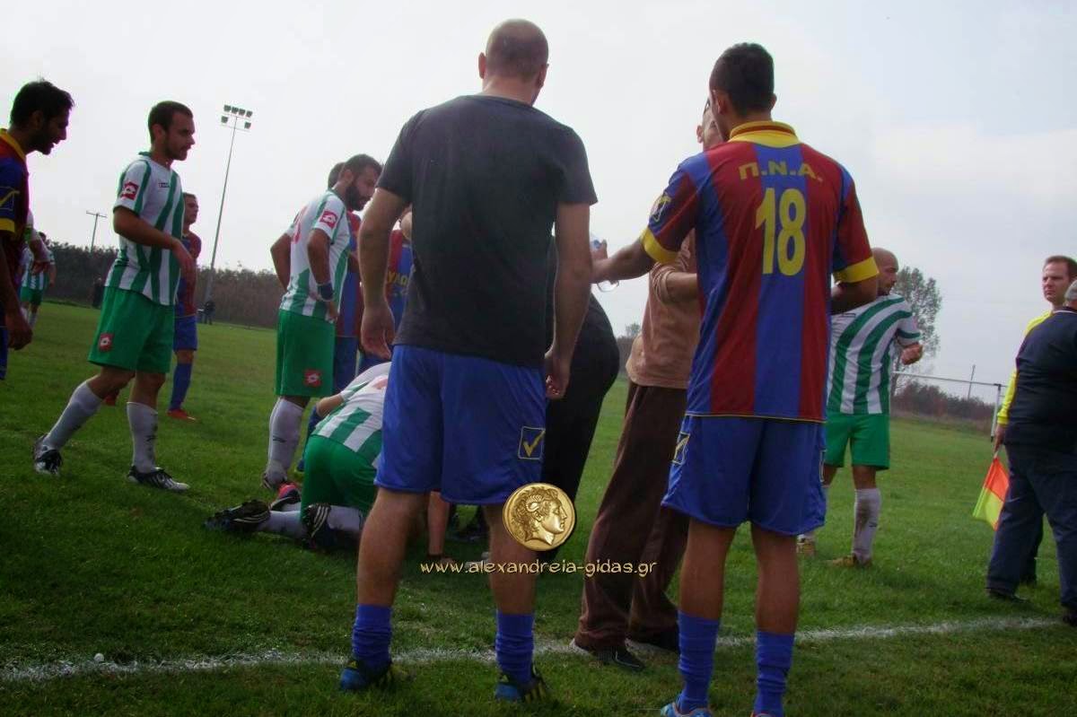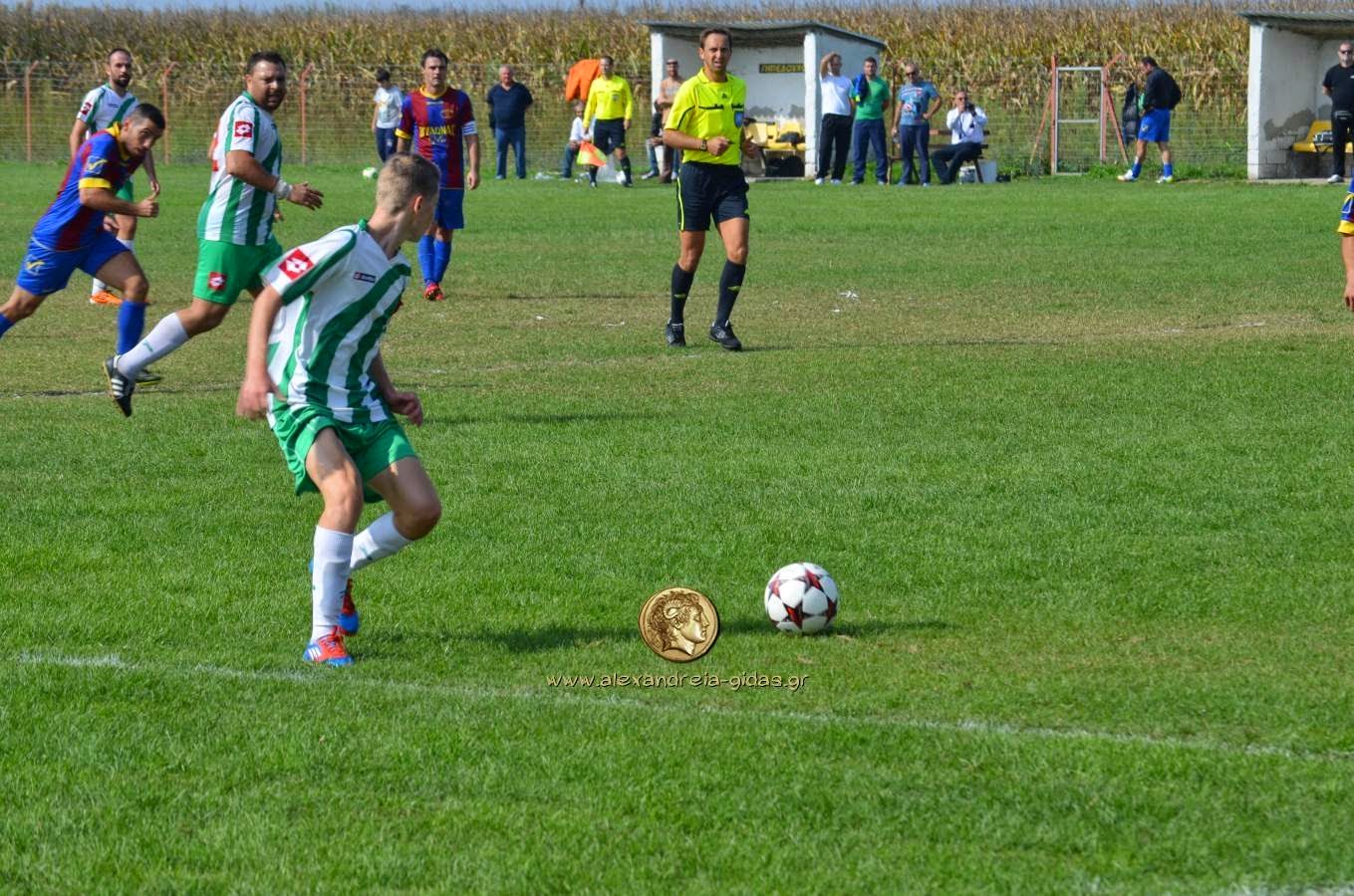 Οι γηπεδούχοι άνοιξαν το σκορ στο 8΄ με απευθείας φάουλ του Δερμιτζόγλου έξω από την μεγάλη περιοχή της Αλεξάνδρειας και κακή αντίδραση του Καρασαββίδη (1-0). Στο 29΄ οι γηπεδούχοι θα μείνουν με 10 ποδοσφαιριστές όταν ο Μελεσσίδης θα αποβληθεί με απευθείας κόκκινη κάρτα για αντιαθλητικό μαρκάρισμα στον Αποστολόπουλο. Στο επόμενο λεπτό ο Κίτσας ισοφάρισε για την Αλεξάνδρεια όταν έγινε κάτοχος της μπάλας ύστερα από κόντρες (1-1).