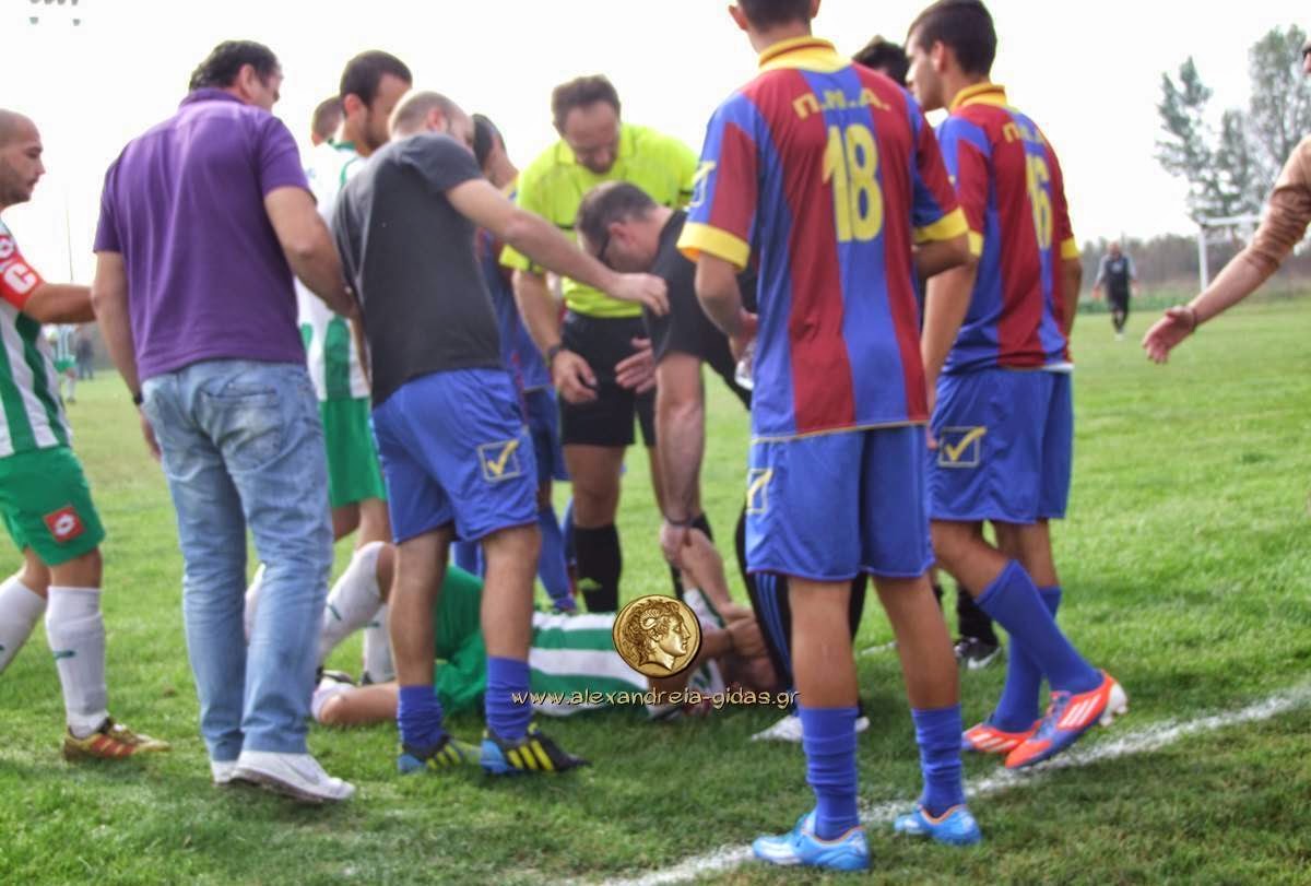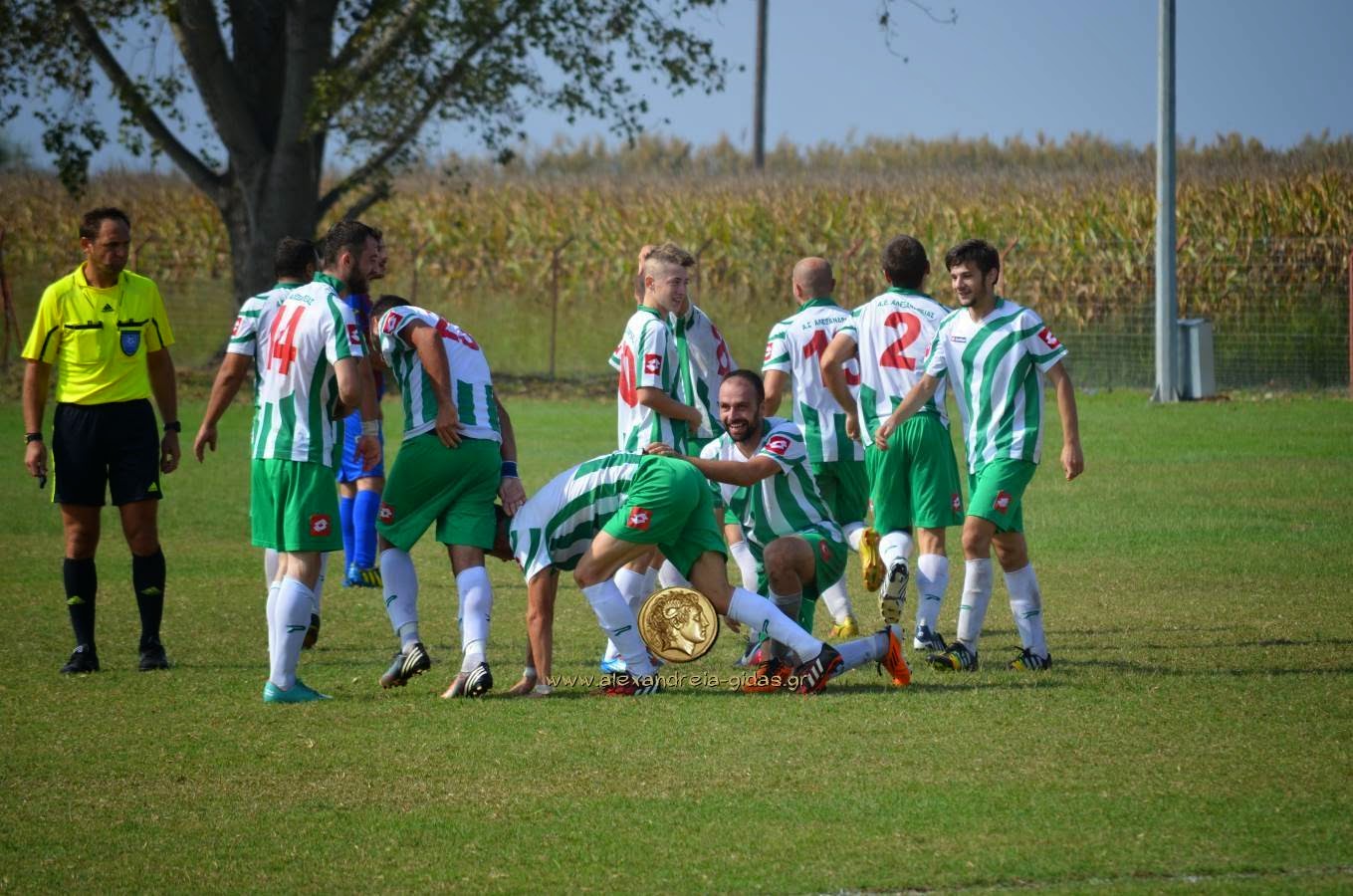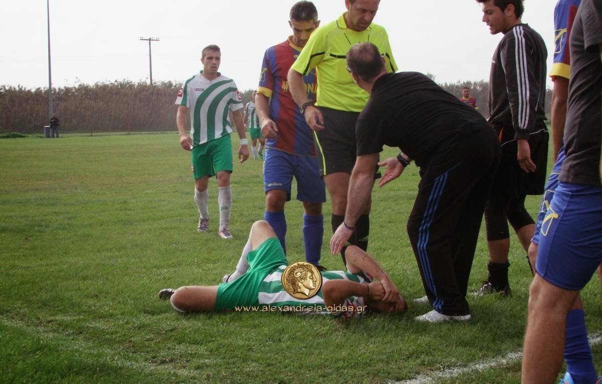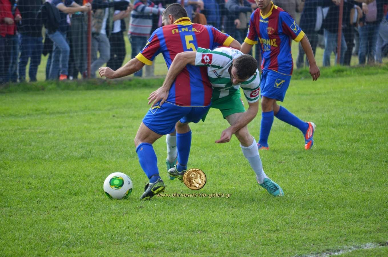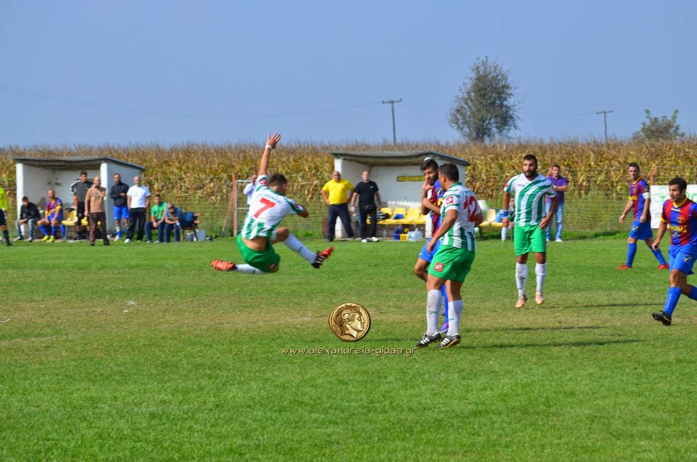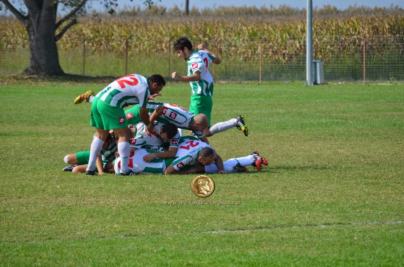 Οι γηπεδούχοι άνοιξαν το σκορ στο 8΄ με απευθείας φάουλ του Δερμιτζόγλου έξω από την μεγάλη περιοχή της Αλεξάνδρειας και κακή αντίδραση του Καρασαββίδη (1-0). Στο 29΄ οι γηπεδούχοι θα μείνουν με 10 ποδοσφαιριστές όταν ο Μελεσσίδης θα αποβληθεί με απευθείας κόκκινη κάρτα για αντιαθλητικό μαρκάρισμα στον Αποστολόπουλο. Στο επόμενο λεπτό ο Κίτσας ισοφάρισε για την Αλεξάνδρεια όταν έγινε κάτοχος της μπάλας ύστερα από κόντρες (1-1).