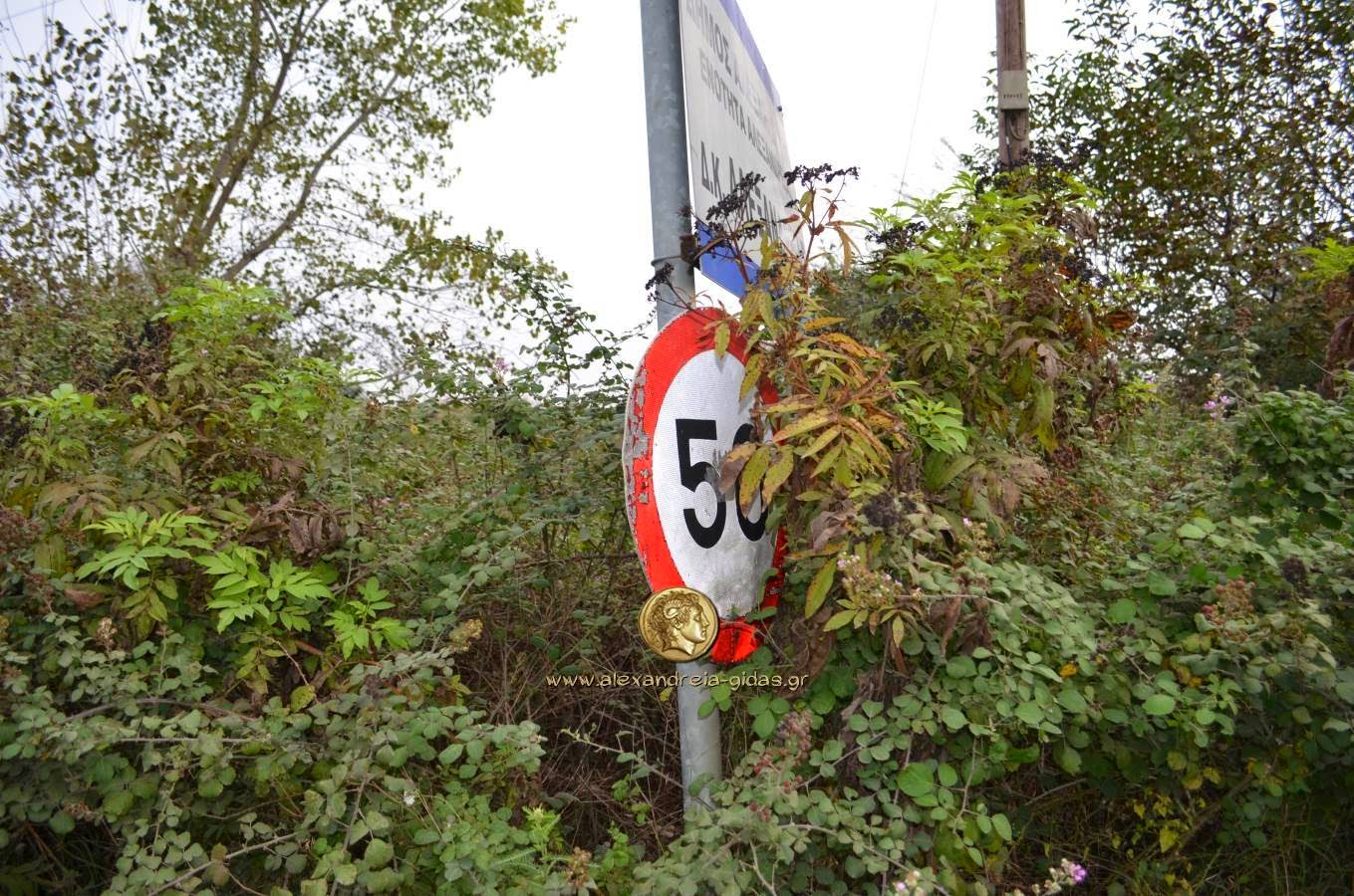 Τα χόρτα έπνιξαν τις πινακίδες Αλεξάνδρειας και του ορίου ταχύτητας στην είσοδο της πόλης (εικόνες)