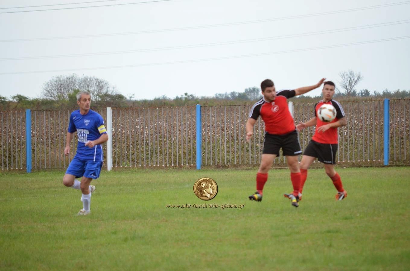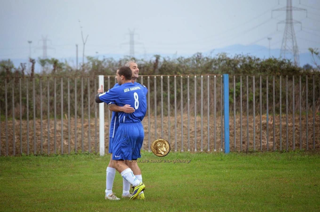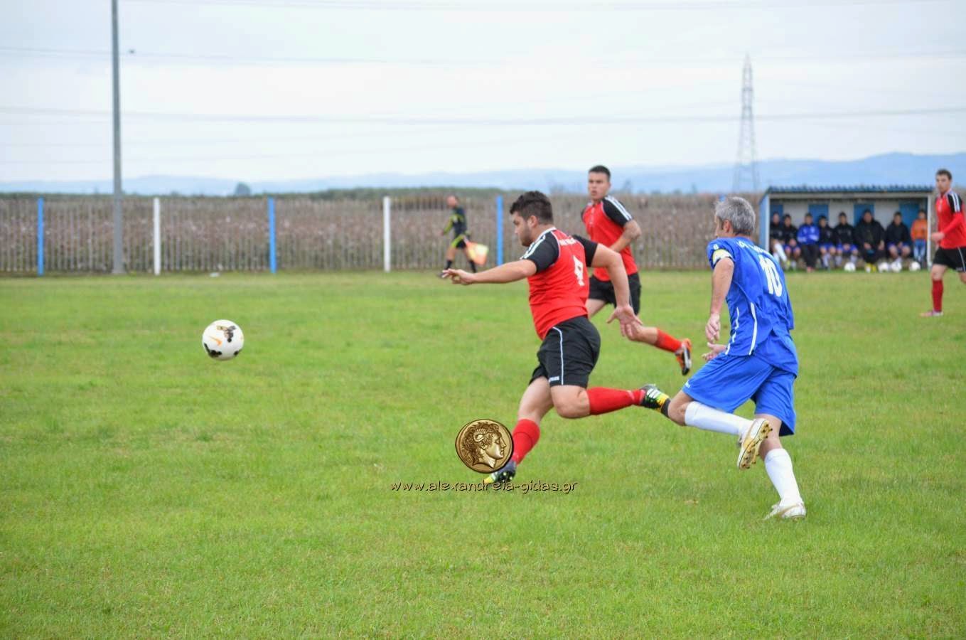 Το σκορ άνοιξε στο 17΄ ο Γελαδάρης (1-0). Δέκα (10) λεπτά αργότερα ο Χατζηδημητρίου διπλασίασε τα τέρματα των γηπεδούχων (2-0) ενώ ο ίδιος έκλεισε το σκορ του ημιχρόνου στο 3-0.
