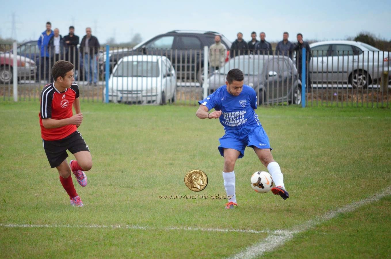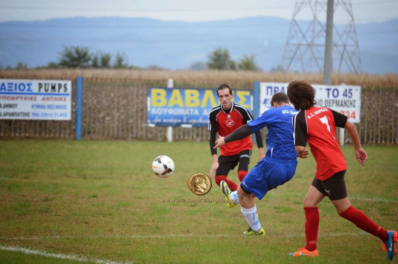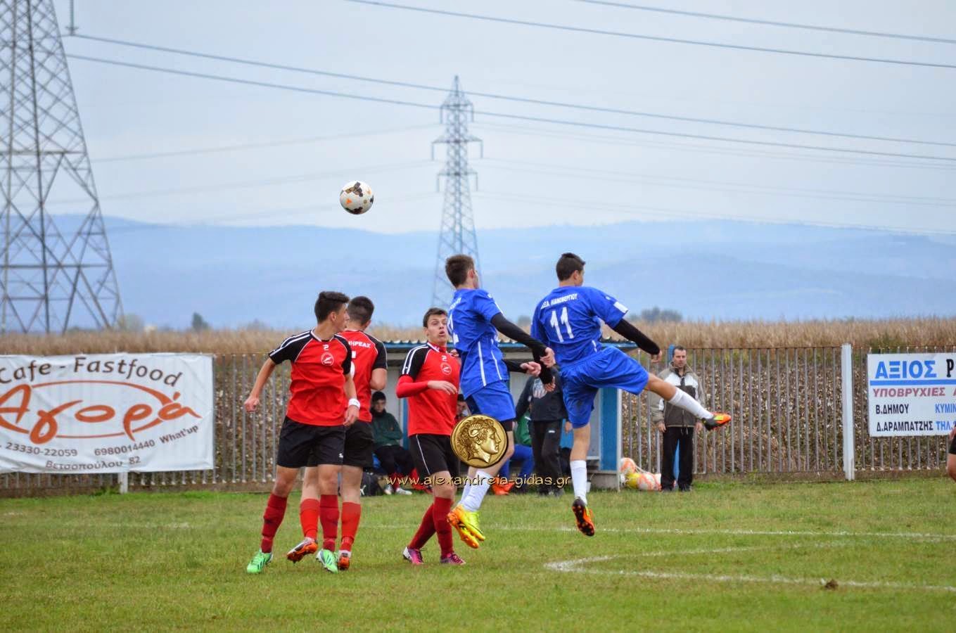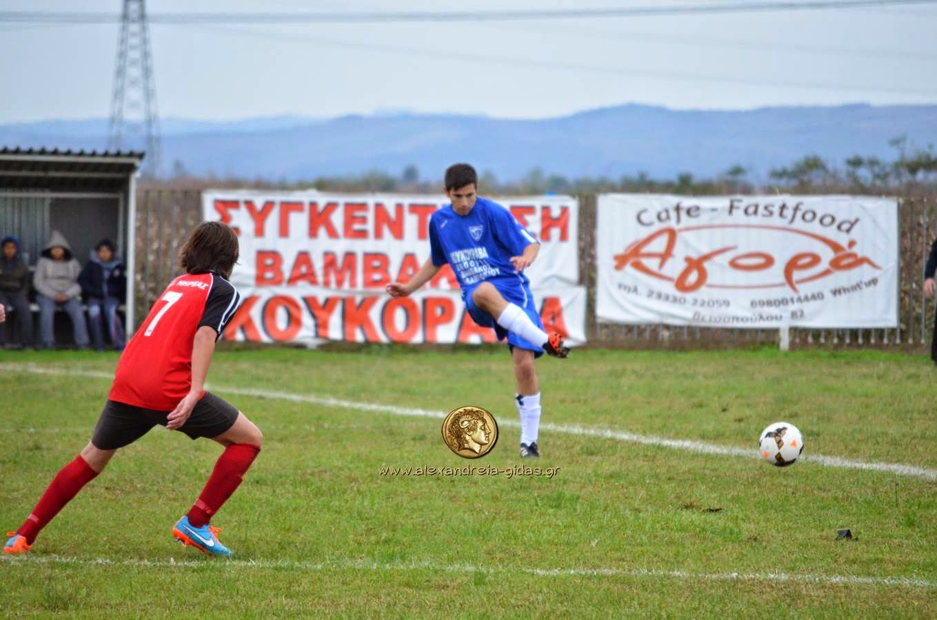 Το σκορ άνοιξε στο 17΄ ο Γελαδάρης (1-0). Δέκα (10) λεπτά αργότερα ο Χατζηδημητρίου διπλασίασε τα τέρματα των γηπεδούχων (2-0) ενώ ο ίδιος έκλεισε το σκορ του ημιχρόνου στο 3-0.