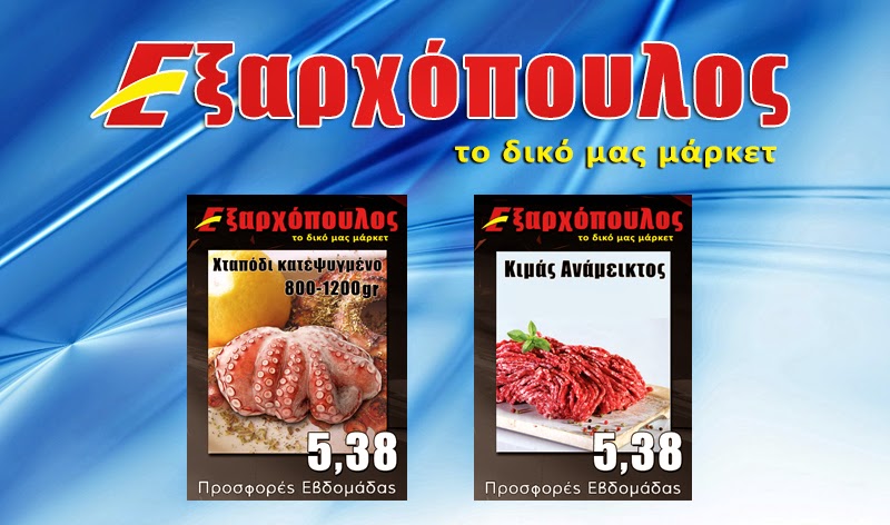 exarxopoulos2Το τοπικό σούπερ μάρκετ ΕΞΑΡΧΟΠΟΥΛΟΣ και από σήμερα Δευτέρα ετοίμασε τις προσφορές της εβδομάδας για όλους.