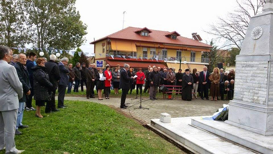 Προηγήθηκε δοξολογία στον Ιερό Ναό Αγίου Δημητρίου, ακολούθησε επιμνημόσυνη δέηση στο Μνημείο των Πεσόντων, στη συνέχεια κατάθεση στεφάνων από τους εκπροσώπους των Τοπικών Αρχών, Φορέων και Συλλόγων και ο ”πανηγυρικός” της ημέρας από τον Διευθυντή του Γυμνασίου κ. Καφτεράνη Θεοχάρη (την εκδήλωση παρουσίασε η μαθήτρια του Δημοτικού Σχολείου Σούρλα Κ. Μαρία).