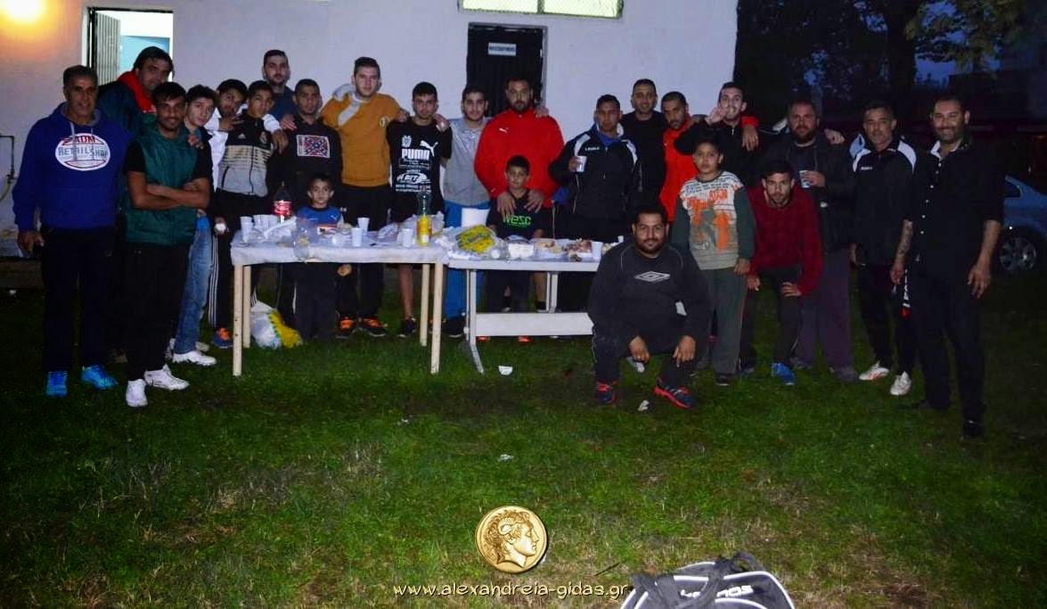 Μπάρμπεκιου οργάνωσαν μετά το τέλος της προπόνησης της Πέμπτης 30/10 του ΠΑΟΚ Αλεξάνδρειας στο γήπεδο Βρυσακίου ο προπονητής της ομάδας Μπάμπης Πετρίδης και ο φίλος της ομάδας, επιχειρηματίας Χρήστος Μαυρίδης.