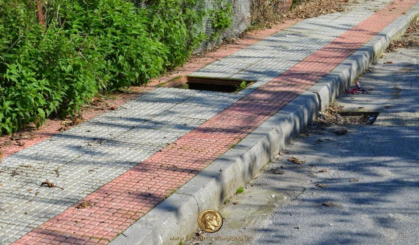 Στα πεζοδρόμια πριν το δημοτικό σχολείο Καψόχωρας από όπου καθημερινά περνάνε οι μαθητές για να παρακολουθήσουν τα μαθήματά τους, έχουν κλαπεί τα καπάκια από τα φρεάτια.