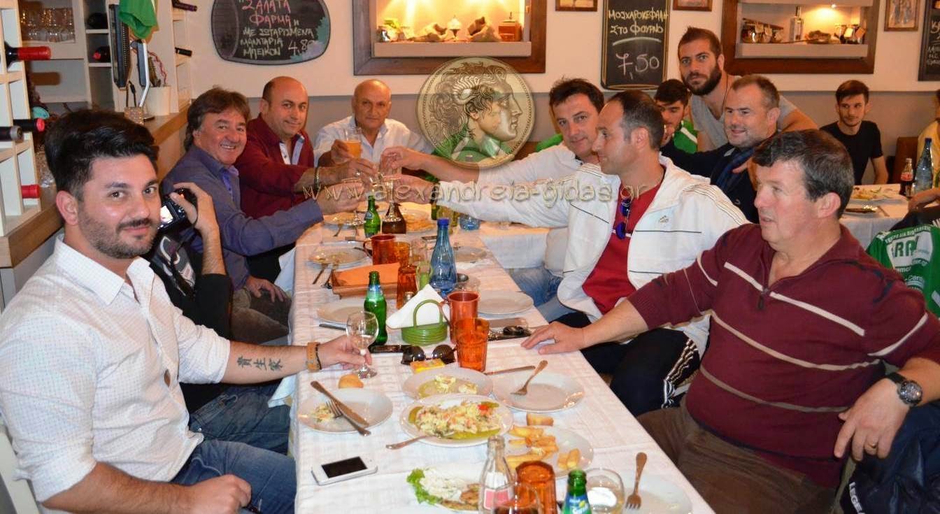 Το τραπέζι έγινε σε πολύ καλό κλίμα και κατά τη διάρκειά του η διοίκηση χάρισε μία φανέλα της Αλεξάνδρειας στον Παντελή, ιδιοκτήτη της ταβέρνας Πιπεριά που είναι χορηγός της ομάδας.