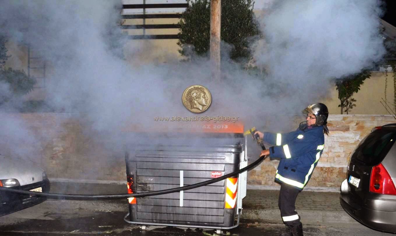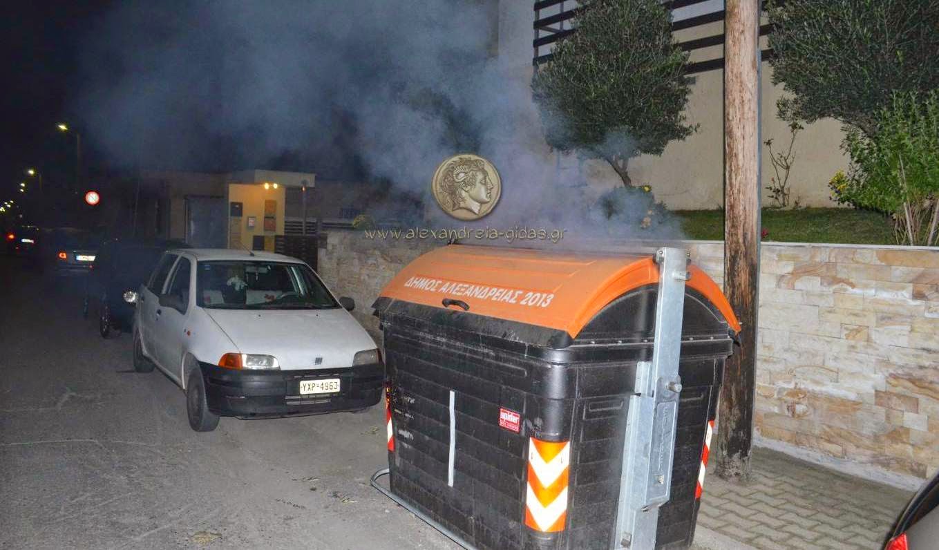 Κάδος απορριμάτων πήρε φωτιά λίγο πριν τις 22:30 το βράδυ της Κυριακής 02/11 στη οδό Μακεδονομάχων στη Αλεξάνδρεια.
