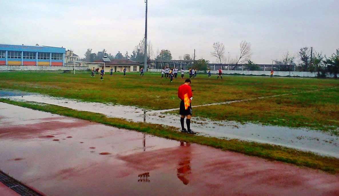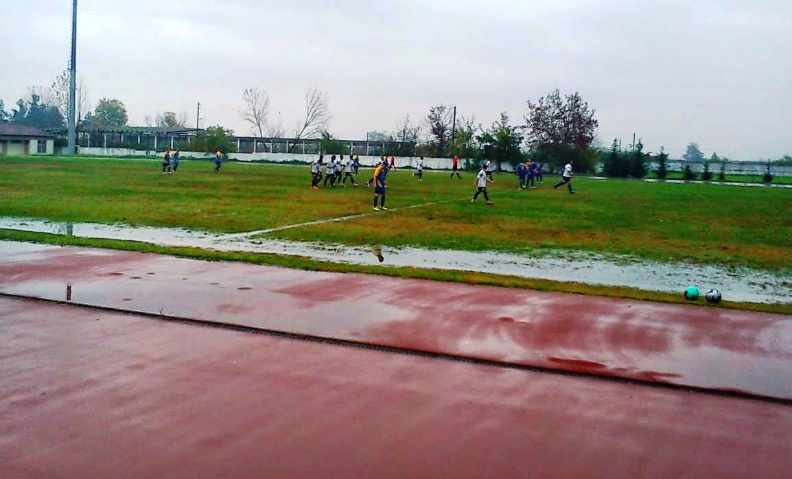 Ο αγωνιστικός χώρος σε πολλά σημεία του θύμιζε αγώνα πόλο και όχι ποδοσφαίρου λόγω της έντονης βροχόπτωσης στην Ημαθία στη διάρκεια της ημέρας.