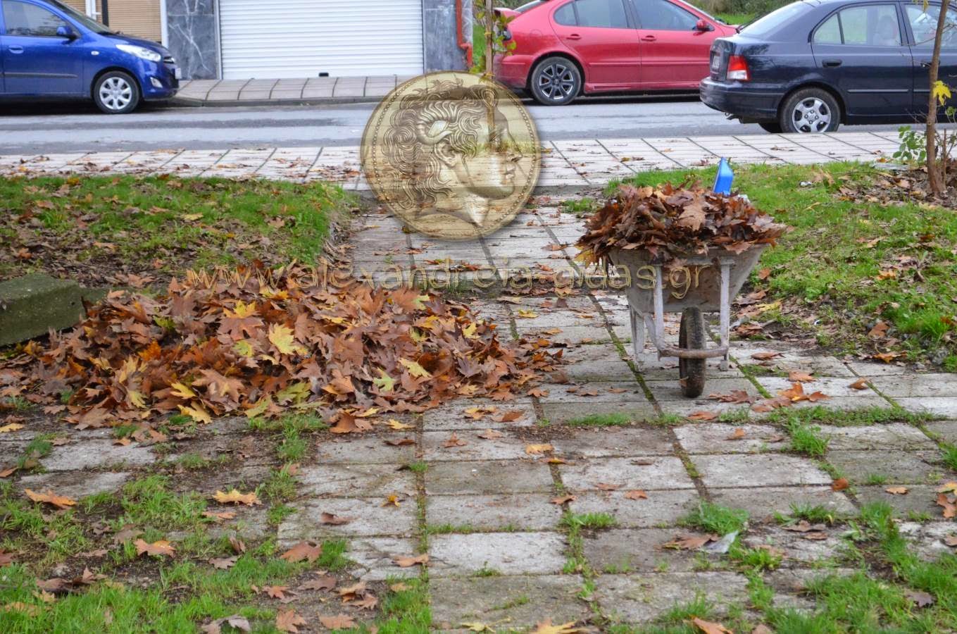 Μόνος του καθάρισε ένα μεγάλο κομμάτι της πλατείας από φύλλα που είχαν κατακλείσει τον χώρο κάτι που συνεχίζει σιγά σιγά και με υπομονή να κάνει μέχρι και αυτήν την ώρα που γράφονται οι γραμμές αυτές.