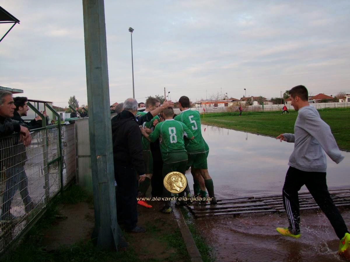 Οι ποδοσφαιριστές αγνόησαν τα νερά που υπήρχαν μπροστά στον πάγκο και έτρεξαν όλοι μαζί να πανηγυρίσουν το γκολ μαζί με τον Νίκο.