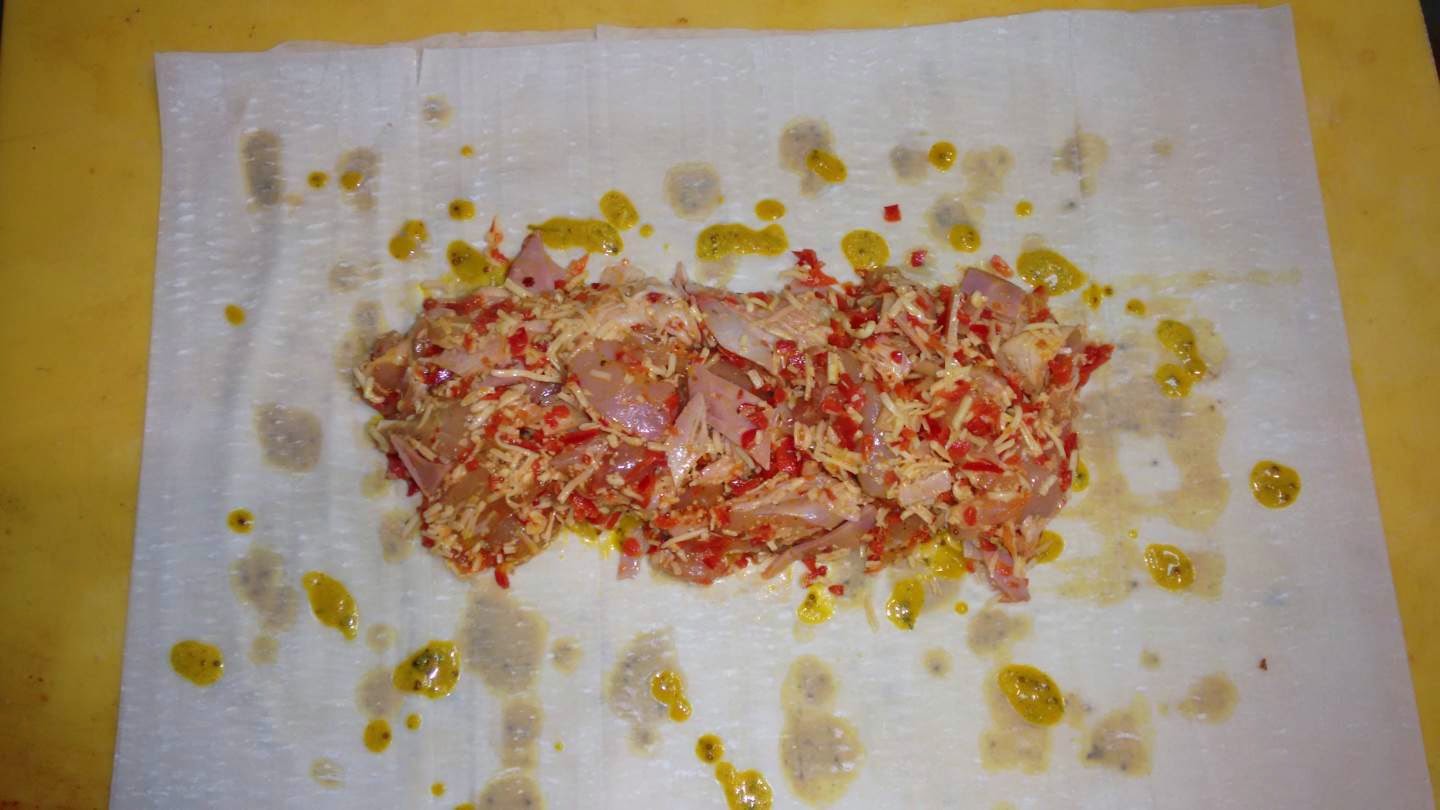 Δοκιμάστε το…. ρολό κοτόπουλο σε φύλλο κρούστας με πιπεριές, κασέρι, μπέικο, μπαχαρικά και φυσικά κοτόπουλο. Η ίδια συνταγή μπορεί να εκτελεστεί και με κιμά. Το μαγειρεύετε στους 180 βαθμούς σε προθερμασμένο φούρνο για 40 λεπτά και καλή σας όρεξη!