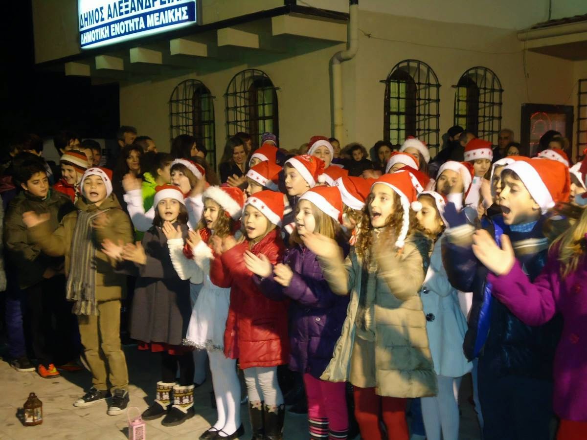 Την σκυτάλη πήραν οι μαθητές του 1ου Δημοτικού Σχολείου, όπου σε συνδυασμό με τις χορωδίες της Μελίκης (παιδική και ενηλίκων) τραγούδησαν Χριστουγεννιάτικα τραγούδια και εκτέλεσαν όμορφες χορογραφίες.