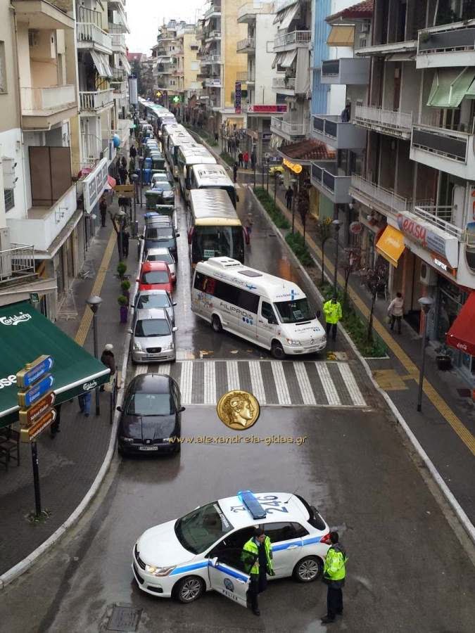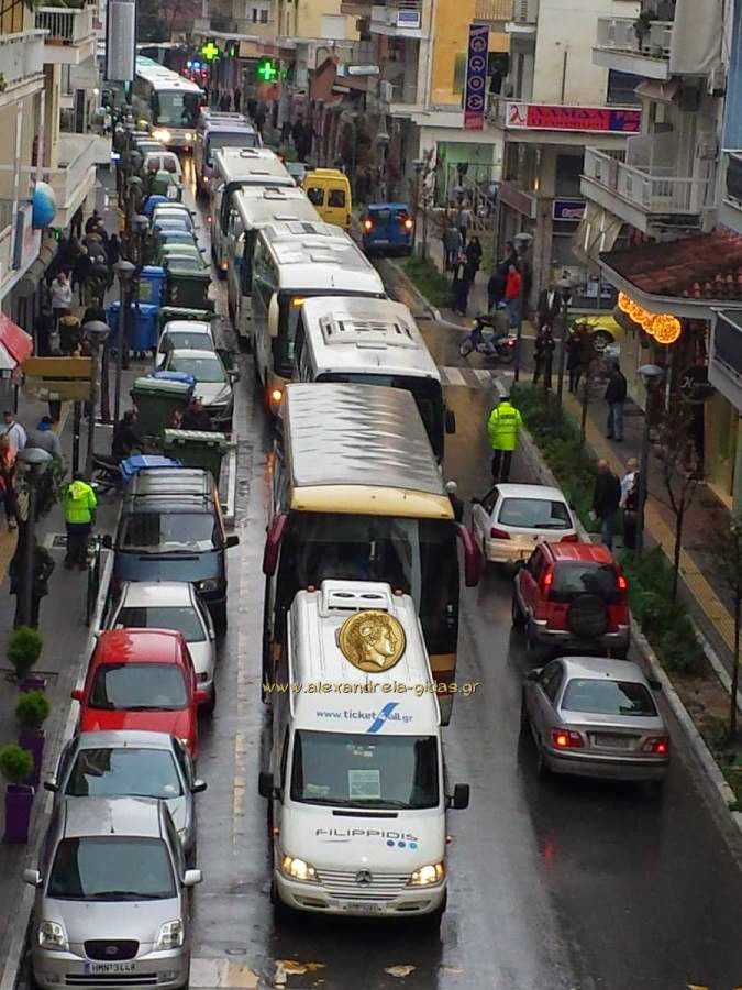 Τεράστια ουρά από λεωφορεία στο κέντρο της Βέροιας – δείτε τι συμβαίνει (εικόνες)