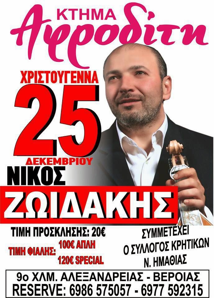 Ανήμερα των Χριστουγέννων όμως θα βρεθεί στο Κτήμα ΑΦΡΟΔΙΤΗ στο Καλοχώρι Αλεξάνδρειας για μία μοναδική εμφάνιση!