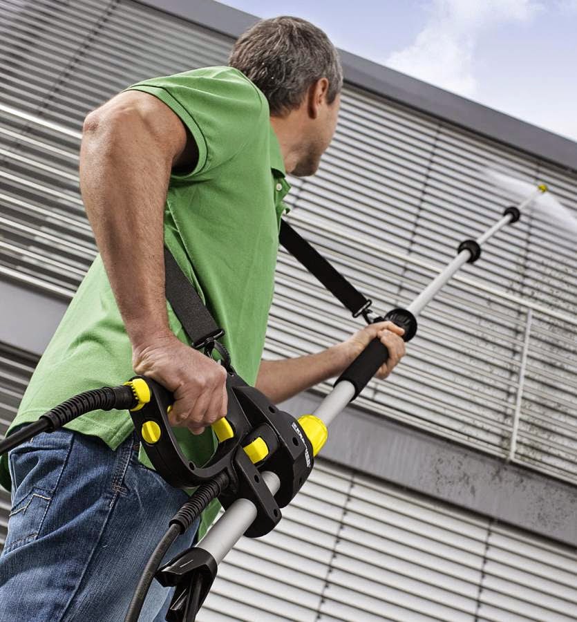 Με την τηλεσκοπική κάννη ψεκασμού (1,20 μ. – 4 μ.) για τον εύκολο καθαρισμό επιφανειών σε μεγάλα ύψη που είναι δύσκολα να προσεγγισθούν με άλλο τρόπο. Κατάλληλη για τον καθαρισμό ψηλών παραθύρων, τοίχων και κάγκελων. Με ιμάντα ώμου, μπαγιονέτ σύνδεση και ενσωματωμένο, εργονομικά ρυθμιζόμενο πιστόλι