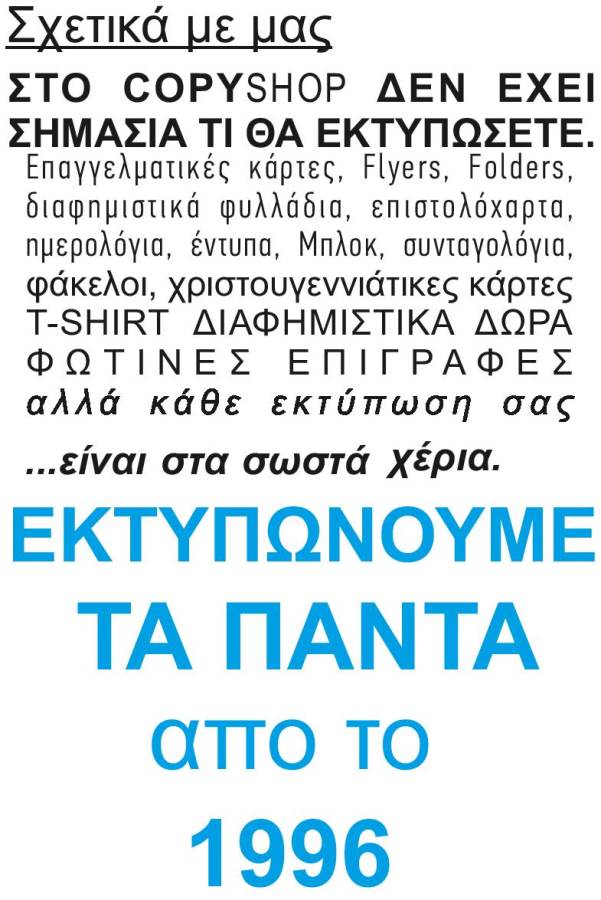 ΤΟΠΙΚΑ 23 Νοεμβρίου, 2014 posted by admin Share Γραφικές τέχνες ΤΣΕΚΟΥΡΑΣ ΑΘΑΝΑΣΙΟΣ στην Αλεξάνδρεια! Αφήστε μια απάντηση Ακύρωση απάντησηςΗ ηλ. διεύθυνση σας δεν δημοσιεύεται. Τα υποχρεωτικά πεδία σημειώνονται με *Σχόλιο * Όνομα Email Ιστότοπος Αποθήκευσε το όνομά μου, email, και τον ιστότοπο μου σε αυτόν τον πλοηγό για την επόμενη φορά που θα σχολιάσω.
