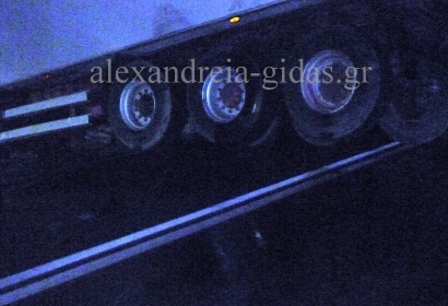άλλο μισό έκλεισε τον δρόμο καθολικά. Δύο γερανοφόρα χρειάστηκε να παρέμβουν για να μπορέσει το όχημα να βγει από τον δρόμο με συντονισμένες ενέργειες των αντρών του Α.Τ. Αλεξάνδρειας. Χρειάστηκαν 6 ώρες για να μπορέσει να ολοκληρωθεί η επιχείρηση η οποία τελείωσε λίγο πριν τις 5 το πρωί.