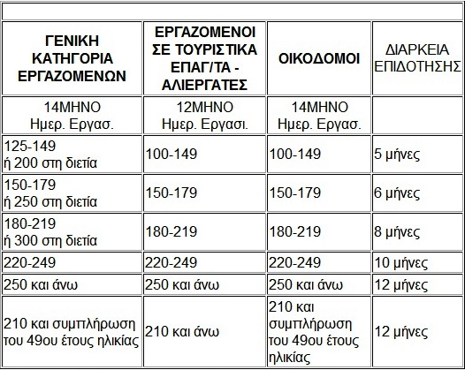 Για τους απασχολούμενους σε τουριστικά επαγγέλματα (ή και εποχιακά π.χ. μουσικοί, ηθοποιοί κ.α ) αρκούν 100 ημέρες εργασίας το τελευταίο 12μηνο.